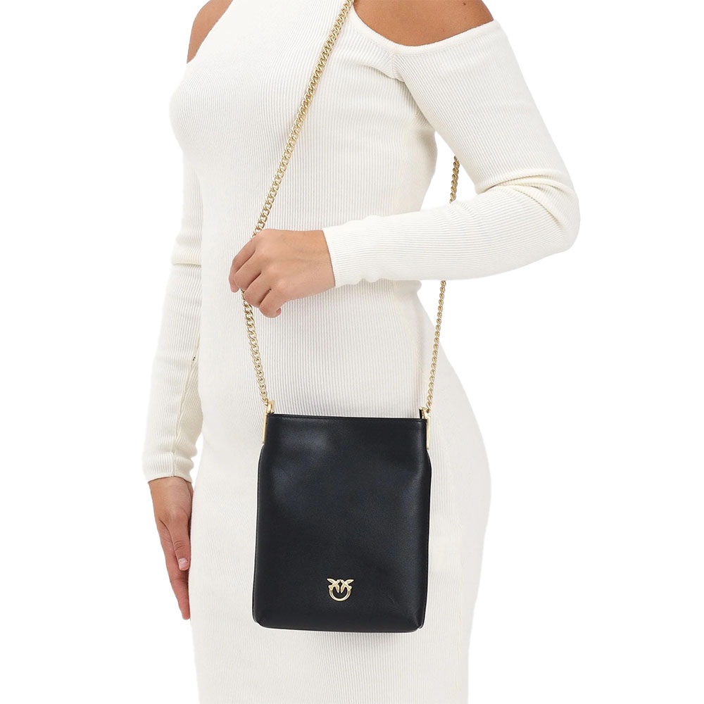 Die Mini Double Umhängetasche von Pinko hat ein Design, das durch das Love Birds-Logo in widerstandsfähiger galvanischer Farbe antique gold ergänzt wird, das den unnachahmlichen Stil der Marke zum Ausdruck bringt. Essentiell und raffiniert, ist dieses Accessoire das fehlende Stück in Ihren Tages-Looks und nicht nur.