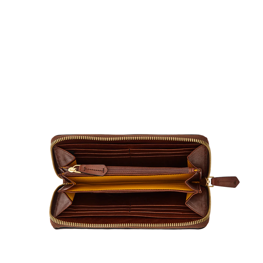 The Lucrezia Bridges Zip-Around-Geldbörse mit zentralem Münzfach, Kartenfächern und Geldscheine.