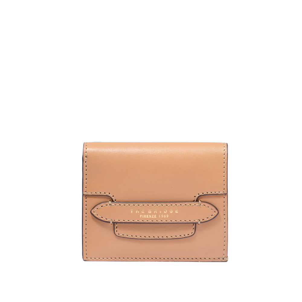 Das The Bridge Portemonnaie ist mit einem goldfarbenen Logo auf der Vorderseite verziert. Sein Raum ist am besten organisiert, um das Notwendige mit Ordnung und Sorgfalt zu lagern.