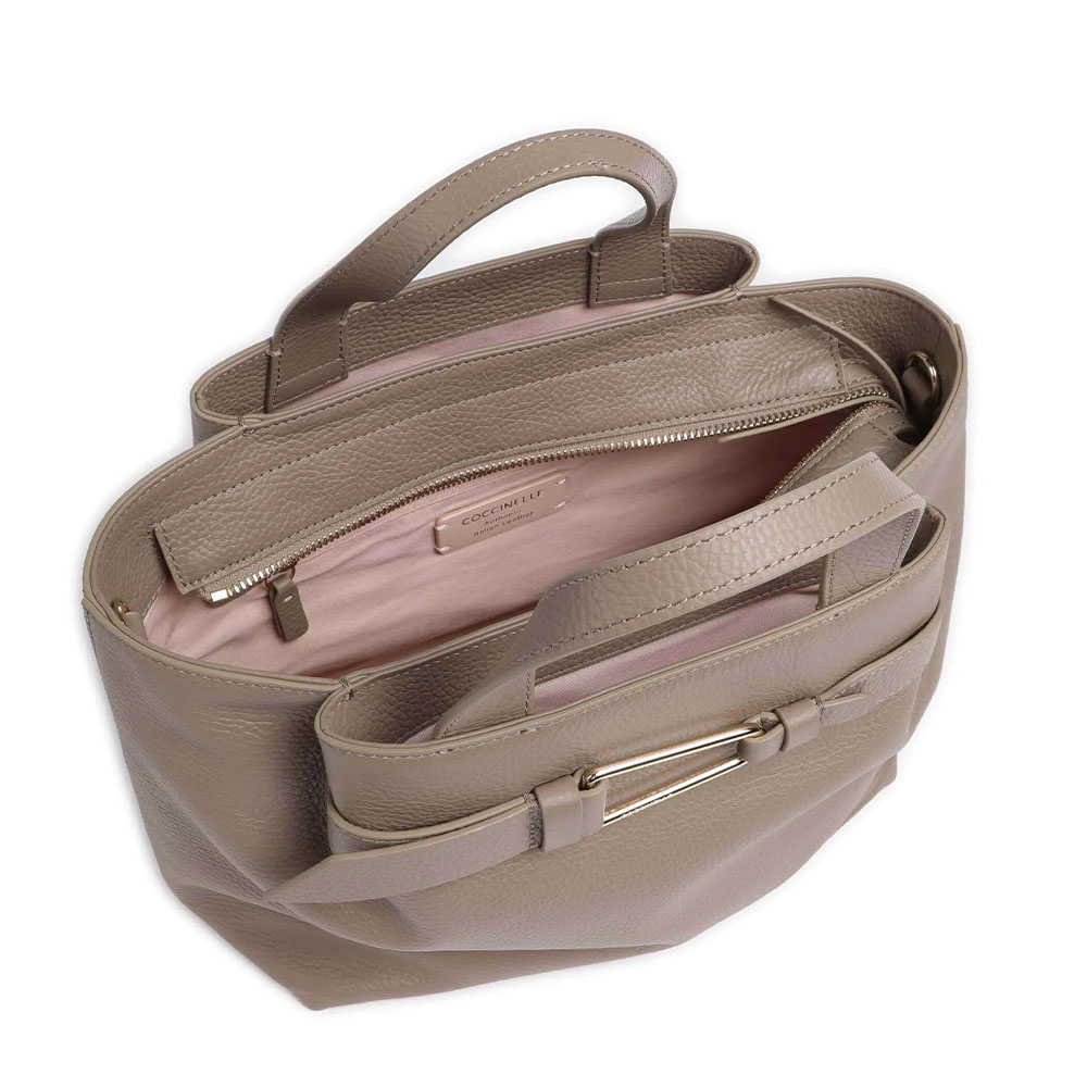 The bag Malory by Coccinelle, perfectly combines design and functionality. Designed to accompany the woman in all moments of the day. This bag stands out for the attention to detail, such as the metal pick on the front, and the functional study of the interior compartments, together with the elegant essentiality of their design.
