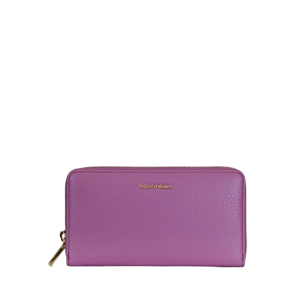 The large Metallic Soft zip around wallet by Coccinelle is embellished with the metal Coccinelle logo. Its space is perfectly organized to store your essentials neatly and tidily.