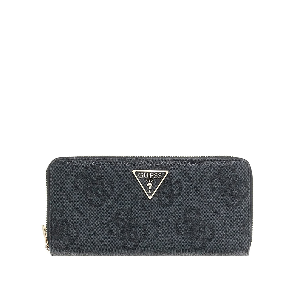Laurel II Slg is Guess's zip-around wallet, featuring a zipped center coin purse, tile slots, and a detachable wristband.