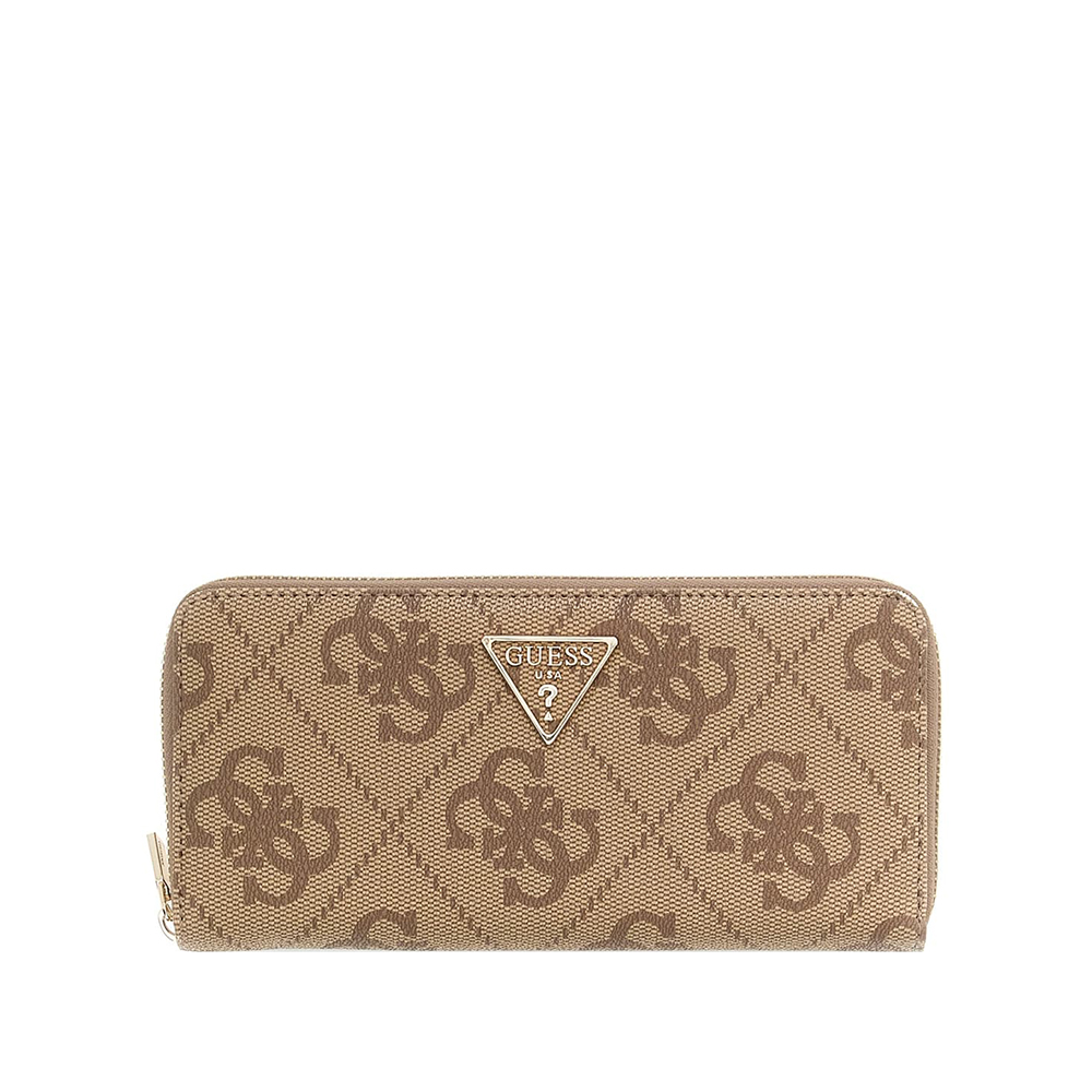 Laurel II Slg is Guess's zip-around wallet, featuring a zipped center coin purse, tile slots, and a detachable wristband.