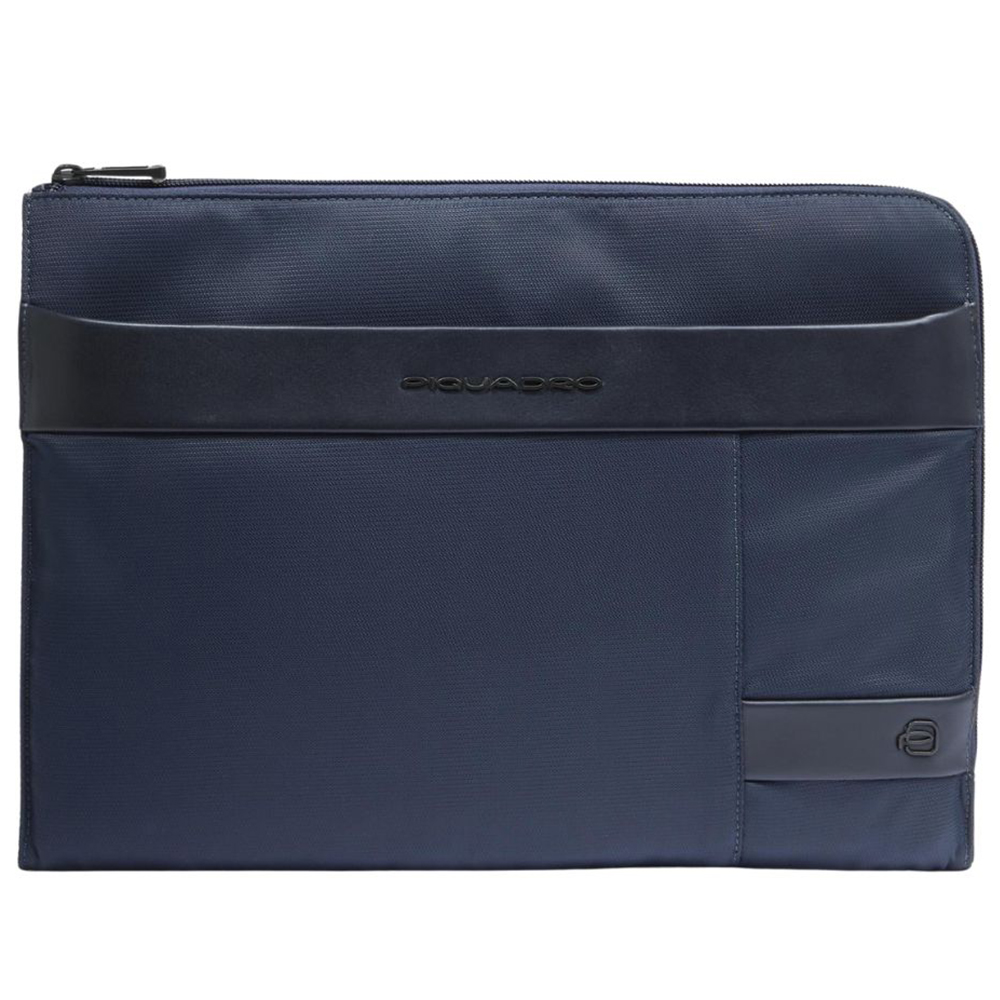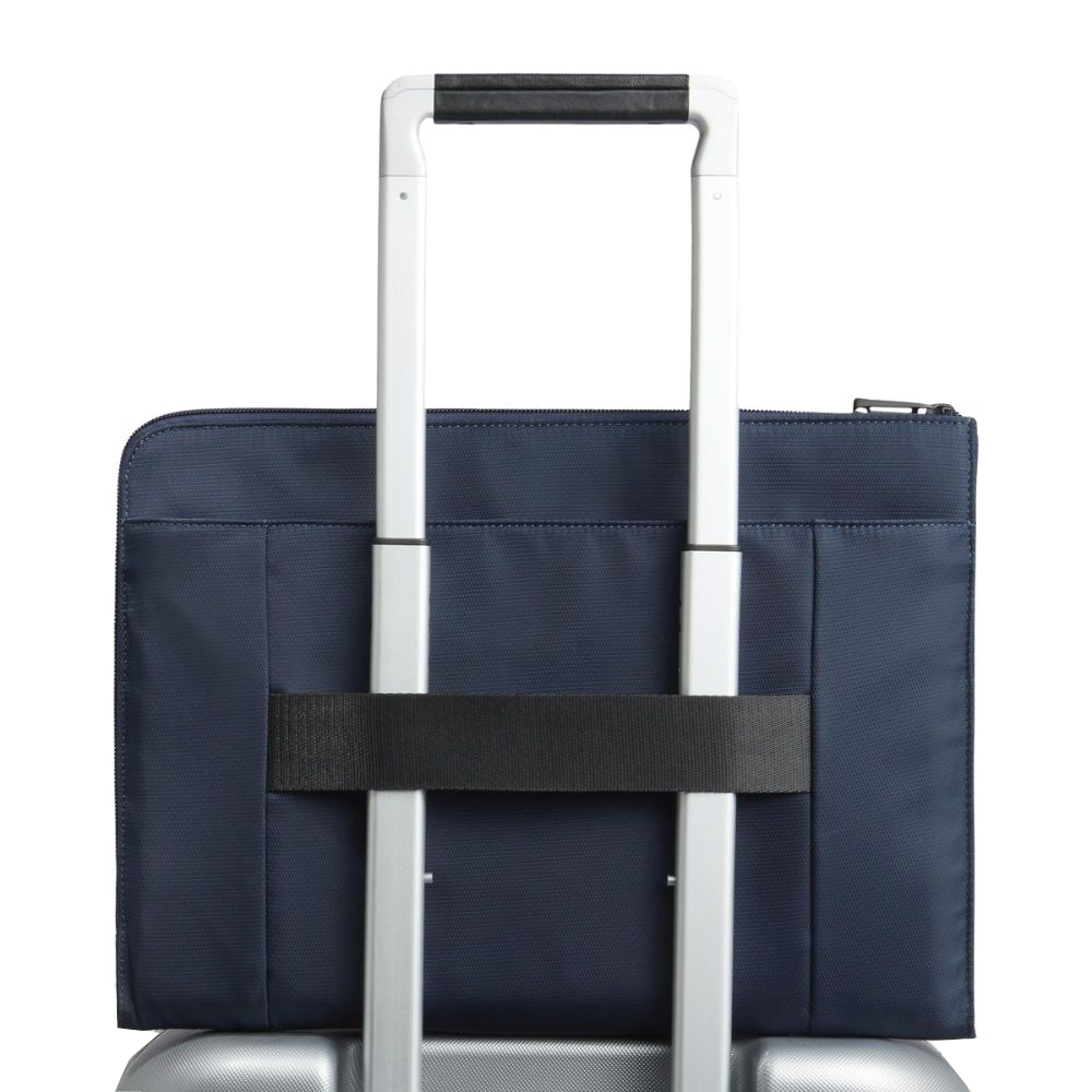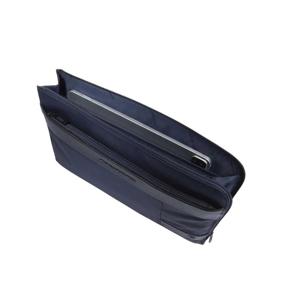 Leather and fabric laptop sleeve with retractable handles and pocket for Piquadro Smart Tracker, RFID-protected