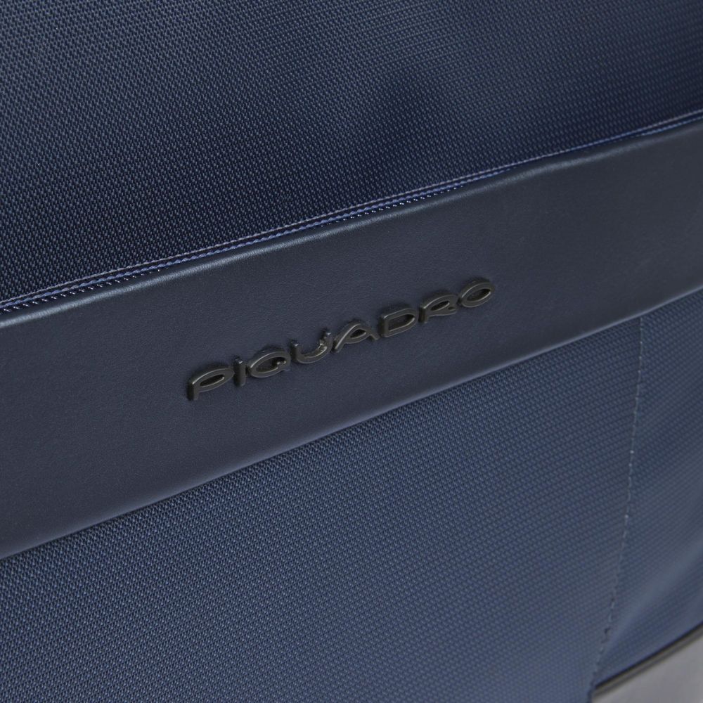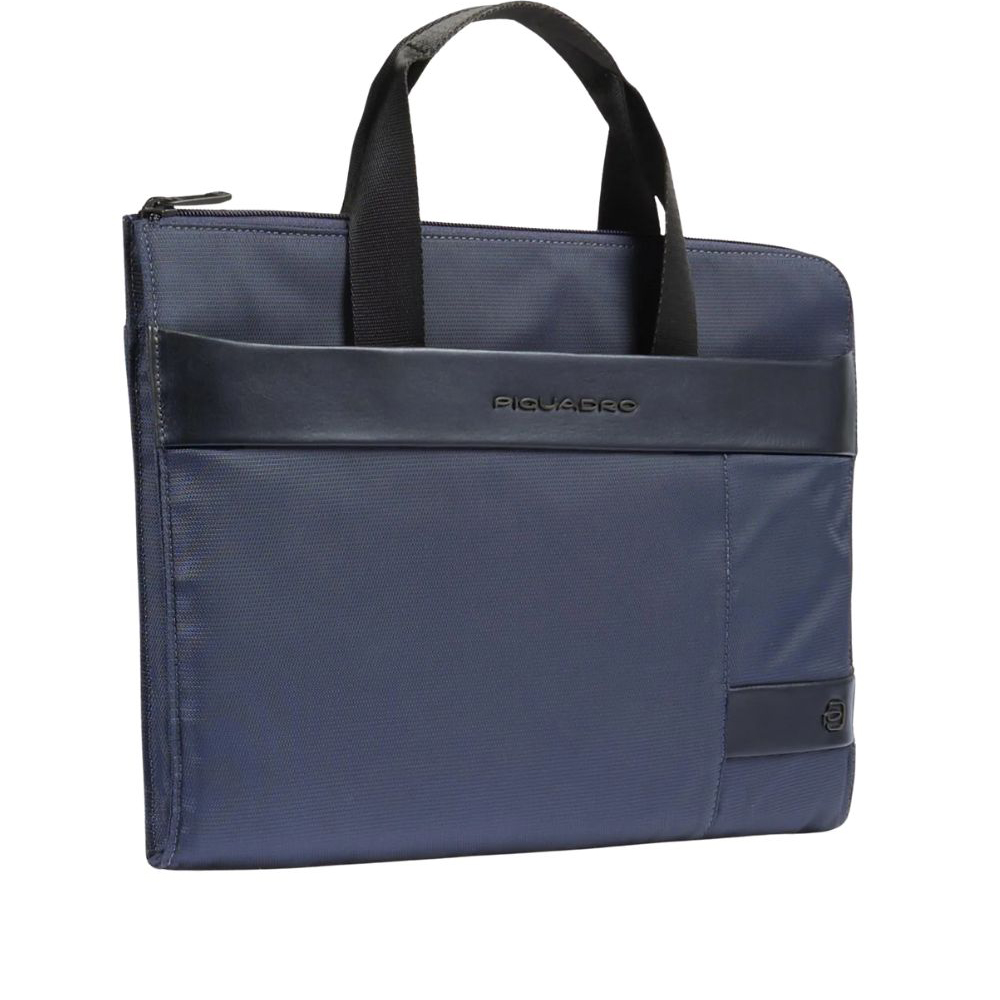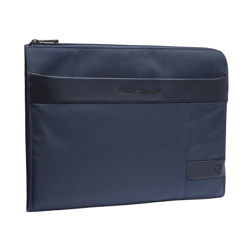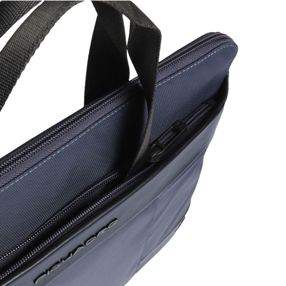 Leather and fabric laptop sleeve with retractable handles and pocket for Piquadro Smart Tracker, RFID-protected