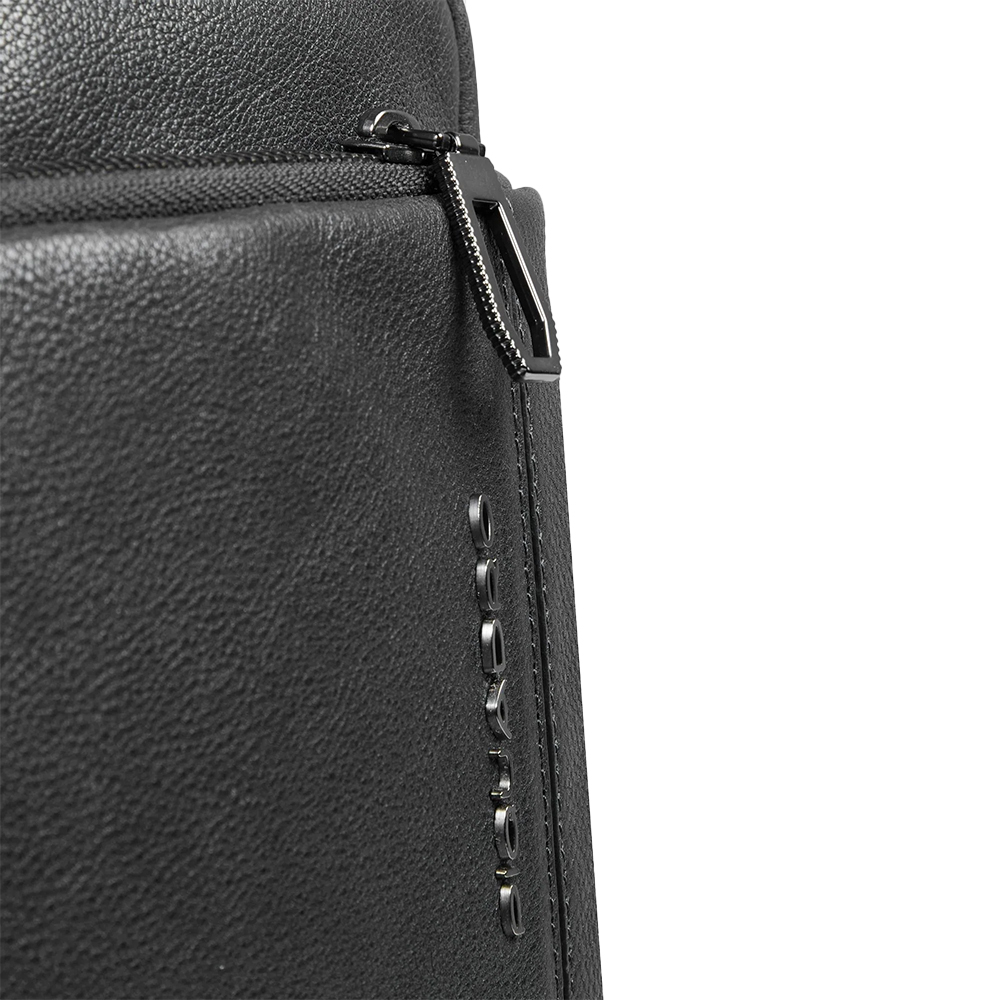 The Cronus pouch by Piquadro for iPad da11" in leather with external pocket closed with zip.