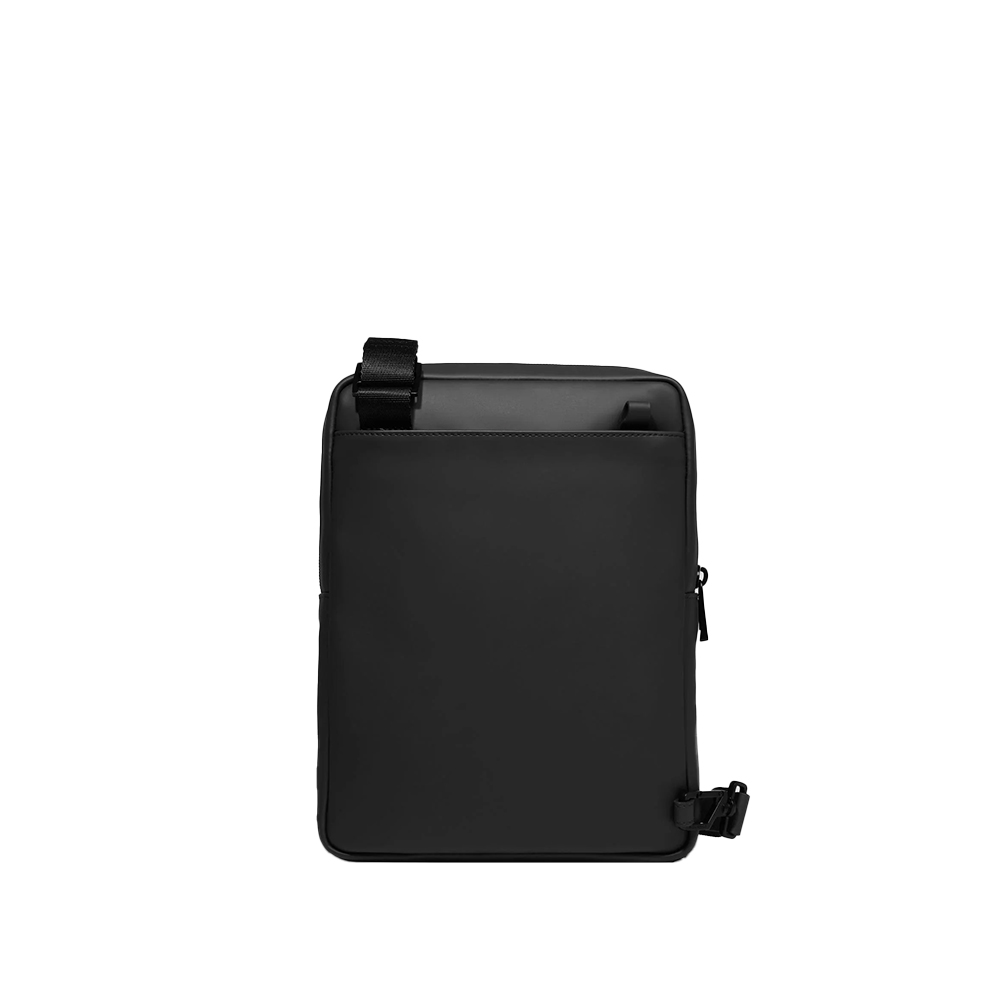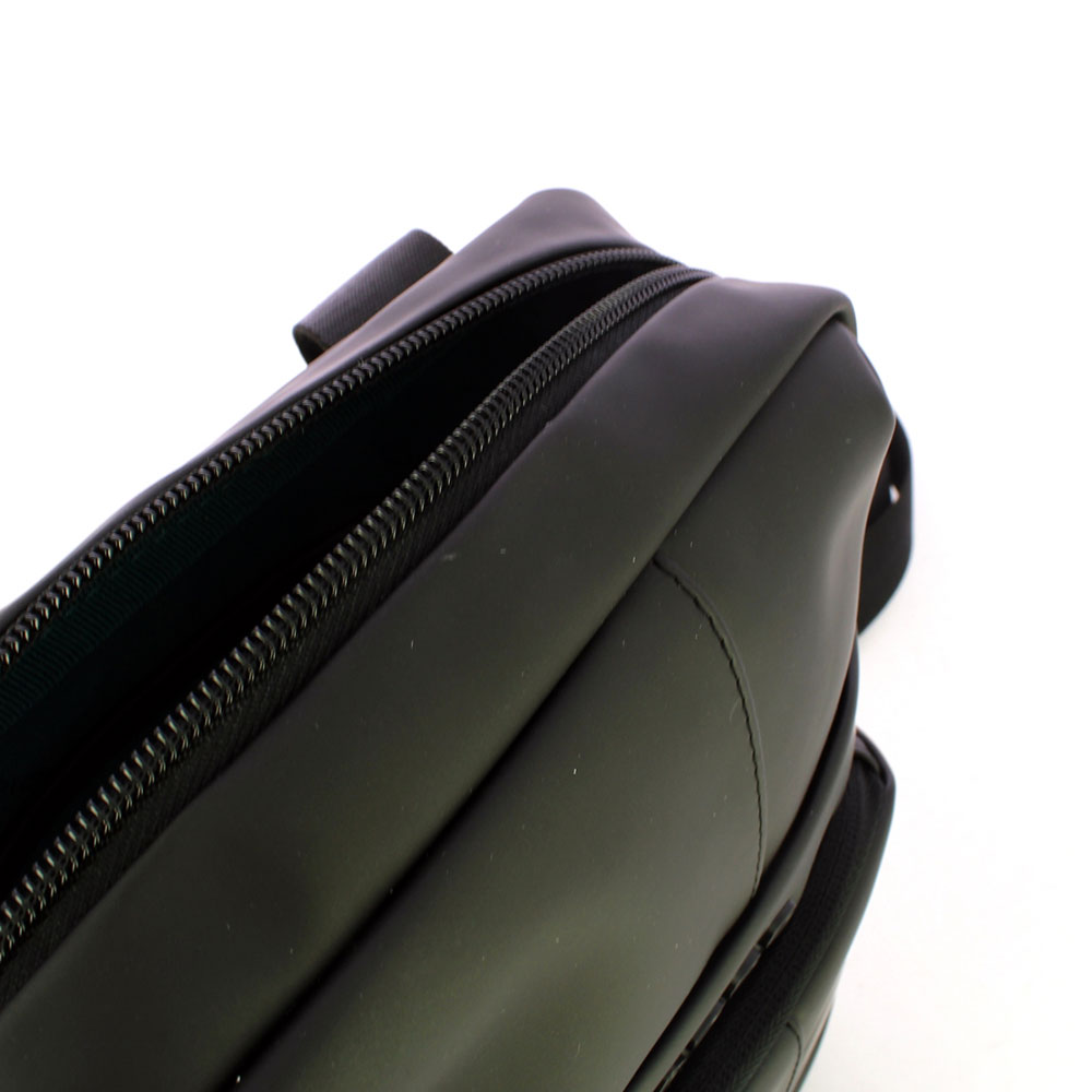 The Piquadro bag is made of rubberized fabric, with pockets for AirPods. Front and back pocket closed with zipper, main compartment with zip.