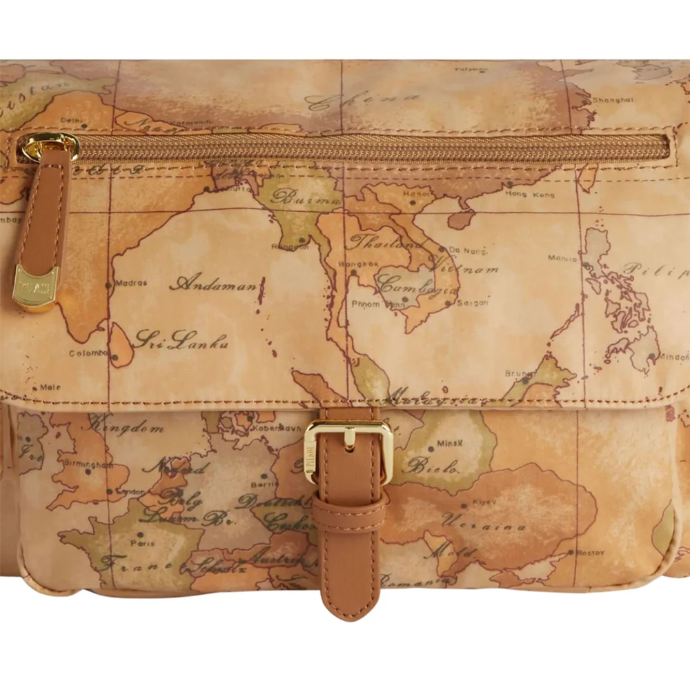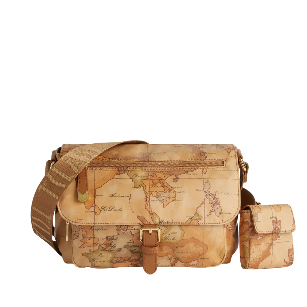 La borsa a tracolla di Alviero Martini conquista con la sua capienza e morbidezza: il tessuto Soft stampa Geo Classic, flessibile le conferisce un carattere sporty e funzionale. Completata dalla tracolla regolabile in nastro logato e dalla tasca frontale con lettering 1 Classe.