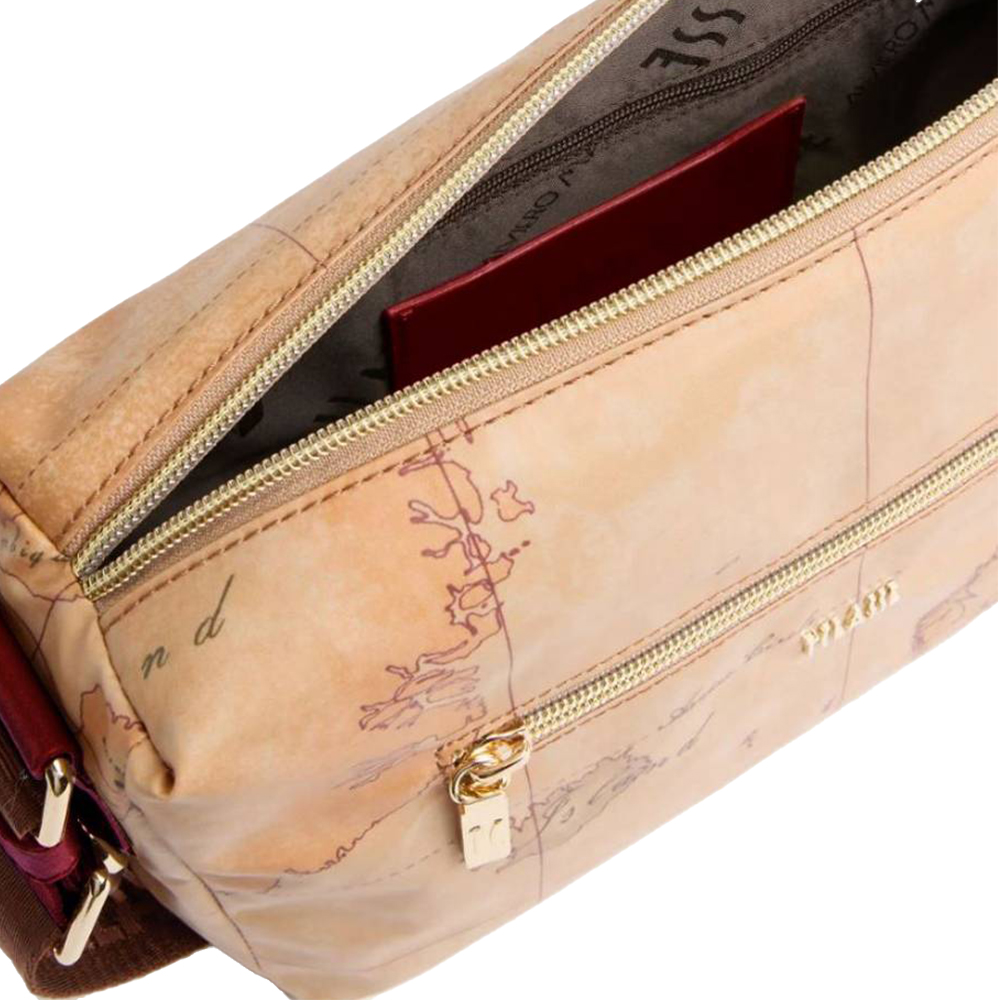 La borsa a tracolla reporter Highland Soft di Alviero Martini conquista con la sua capienza e morbidezza: il tessuto Soft stampa Geo Classic, flessibile e idrorepellente, le conferisce un carattere sporty e funzionale. L'inserto laterale in pelle liscia interpreta il tema di Collezione grazie alle tonalità autunnali e alle linee arcuate, ispirate alle architetture gotiche scozzesi. Completata dalla tracolla regolabile in nastro logato e dalla tasca frontale con lettering 1? Classe in oro chiaro, porterà lo spirito avventuroso delle Highlands nei look urban di mezza stagione.