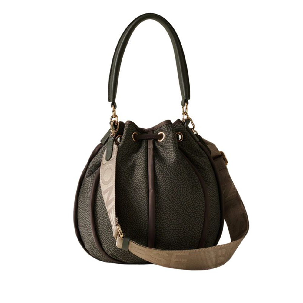 La borsa a mano Cottage di Borbonese ha uno stile minimale ed elegante che si abbina perfettamente a un outfit casual chic. Il tessuto morbido, rende questa borsa a forma di secchiello molto versatile.