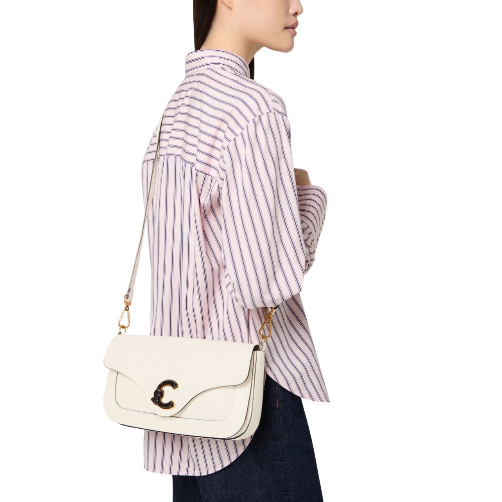 La borsa C-Me Calf di Coccinelle dalle linee geometriche e le curve sofisticate, rafforzano la singolarità del suo design. La costruzione a soffietti aggiunge un tocco di funzionalità e delicata eleganza a questa borsa.