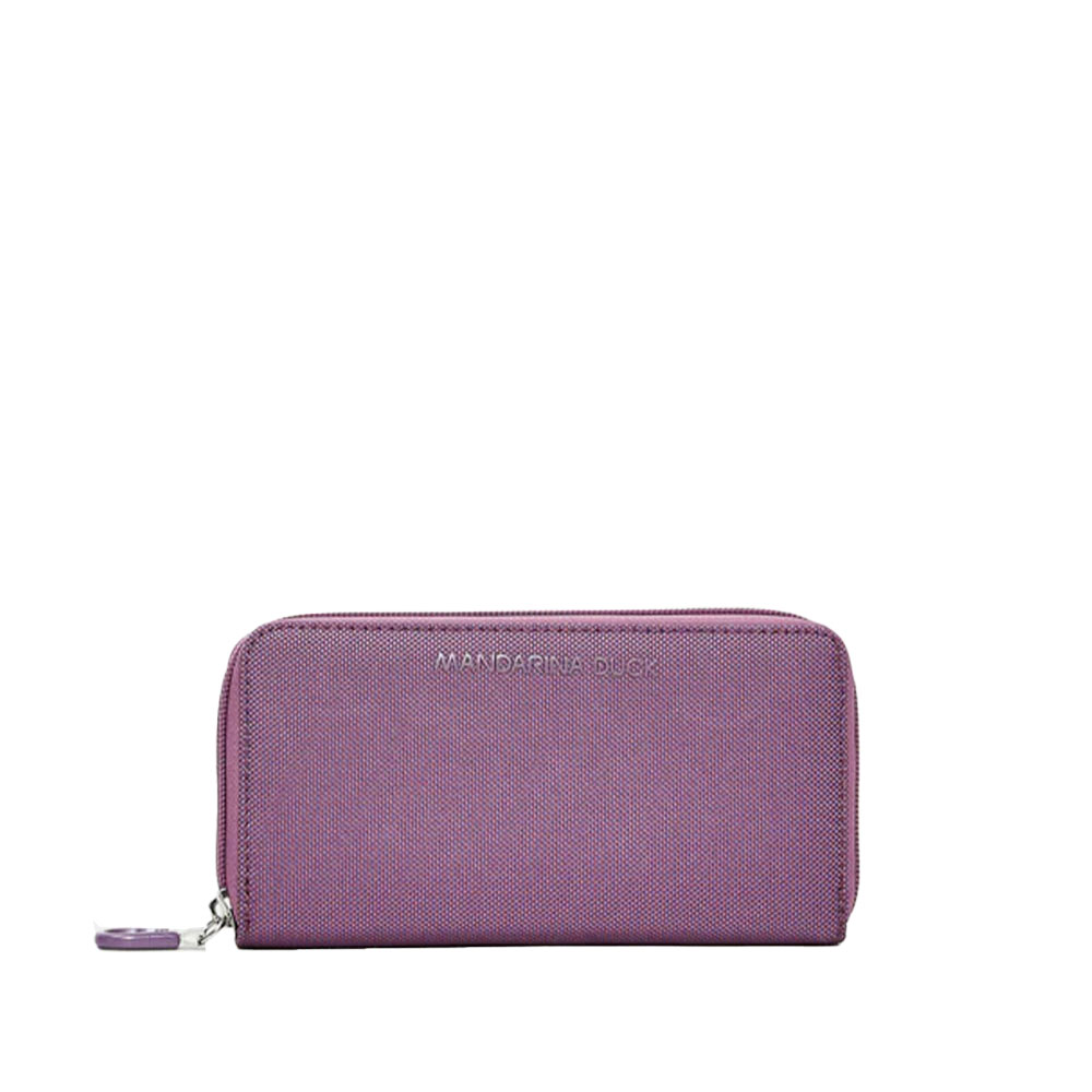 Il portafoglio MD20 di Mandarina Duck zip around in mitrix, storico materiale del marchio, si caratterizza per resistenza, versatilità ed effetto cangiante. Presenta numerosi vani per carte di credito e uno portamonete zippato. Il restyling degli accessori lo rende più contemporaneo.