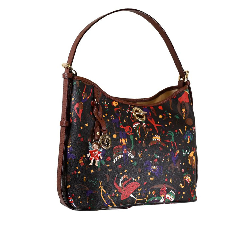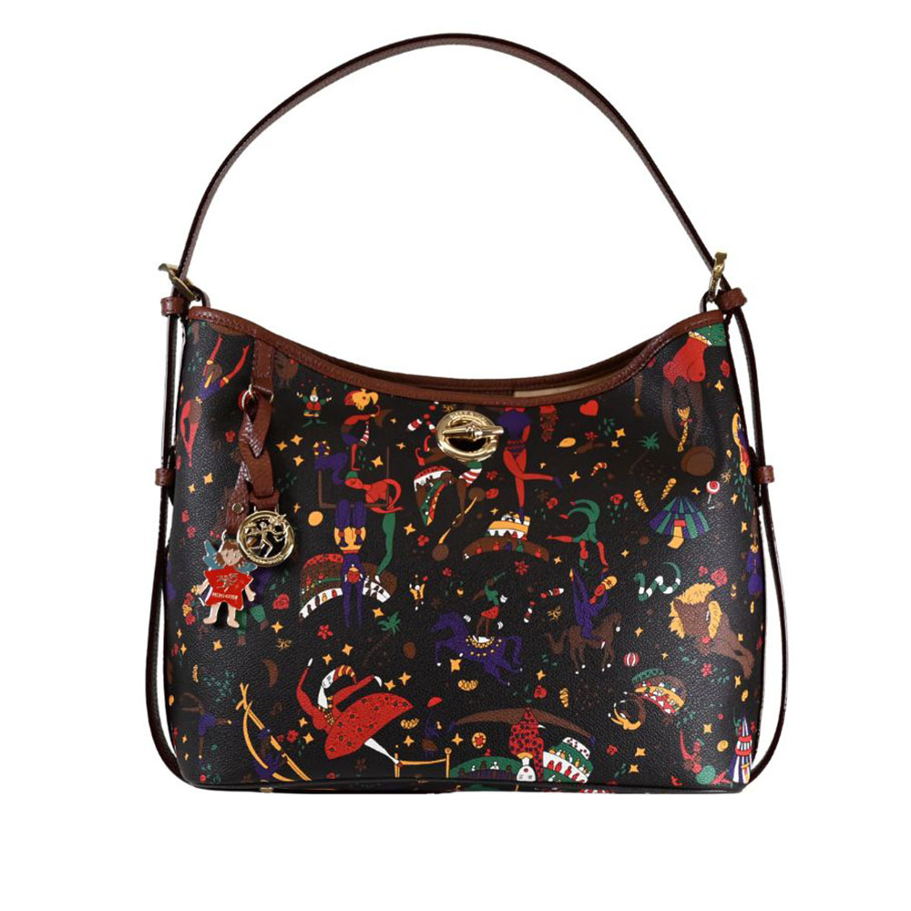 La borsa a spalla di Piero Guidi è in grado di ospitare tutto quel che serve, abbinandosi facilmente a diversi outfit.