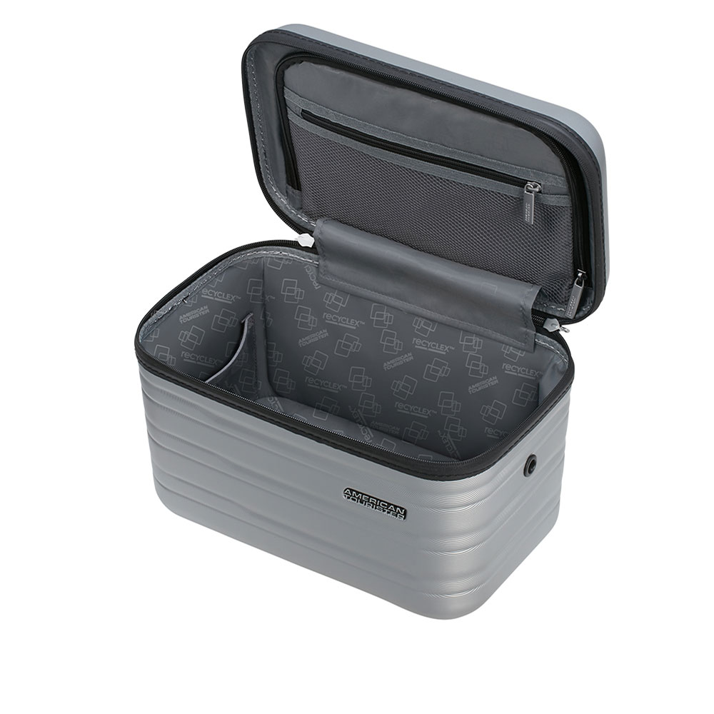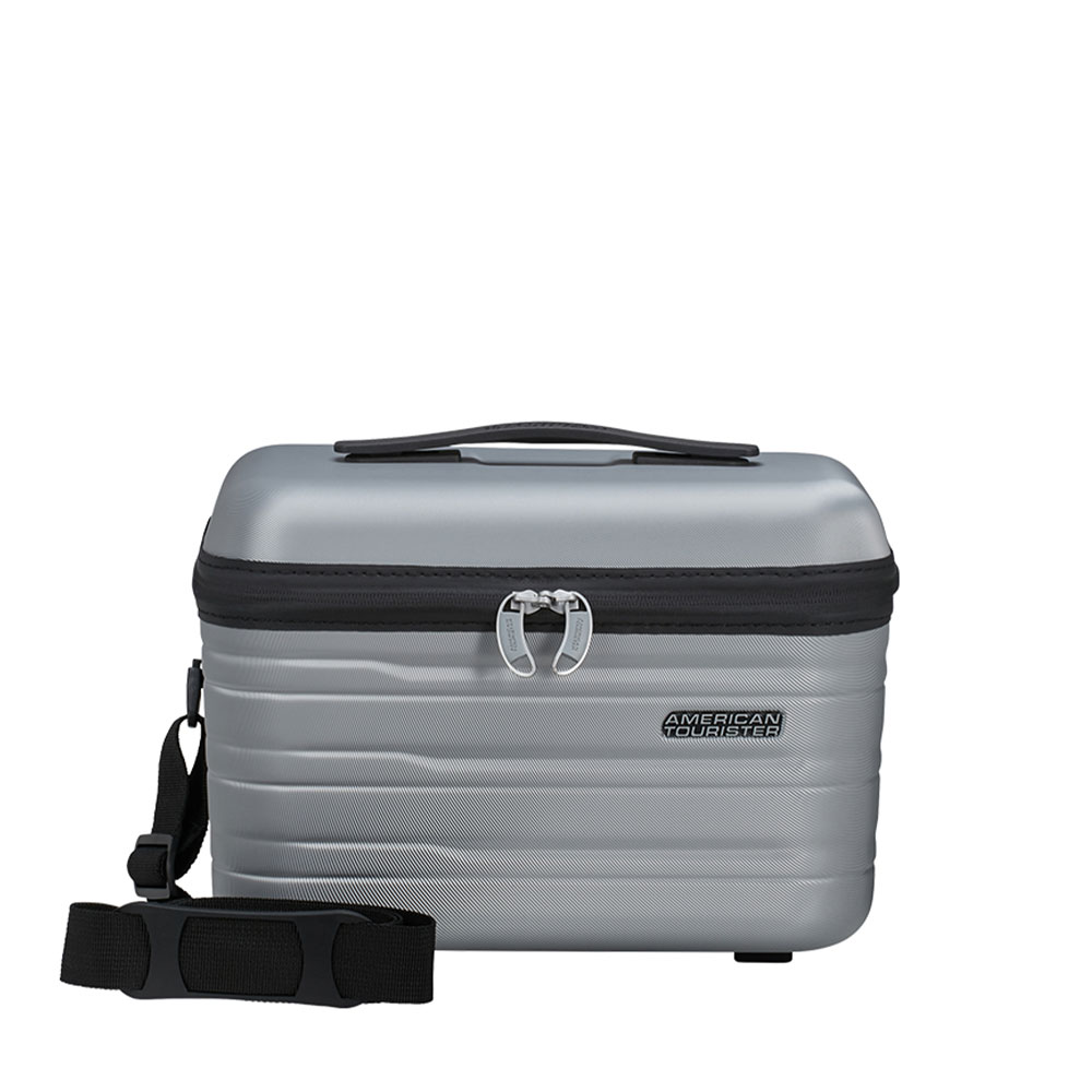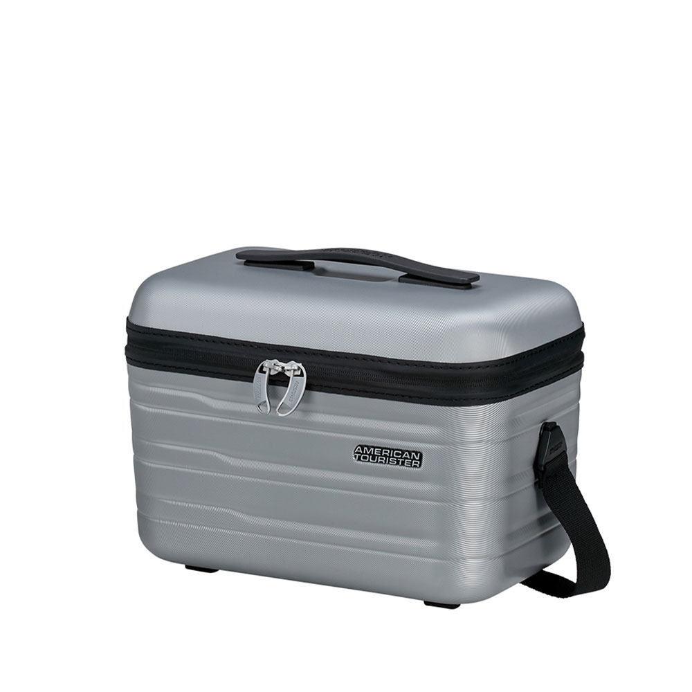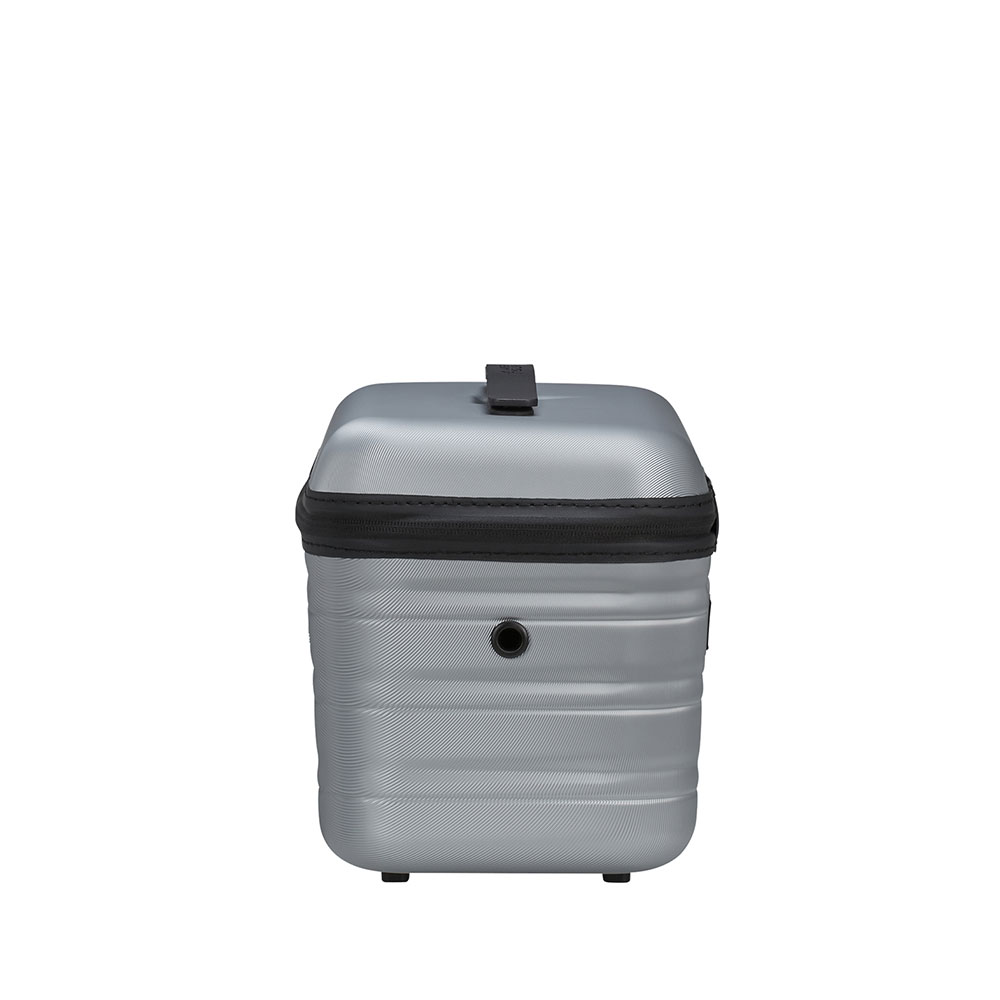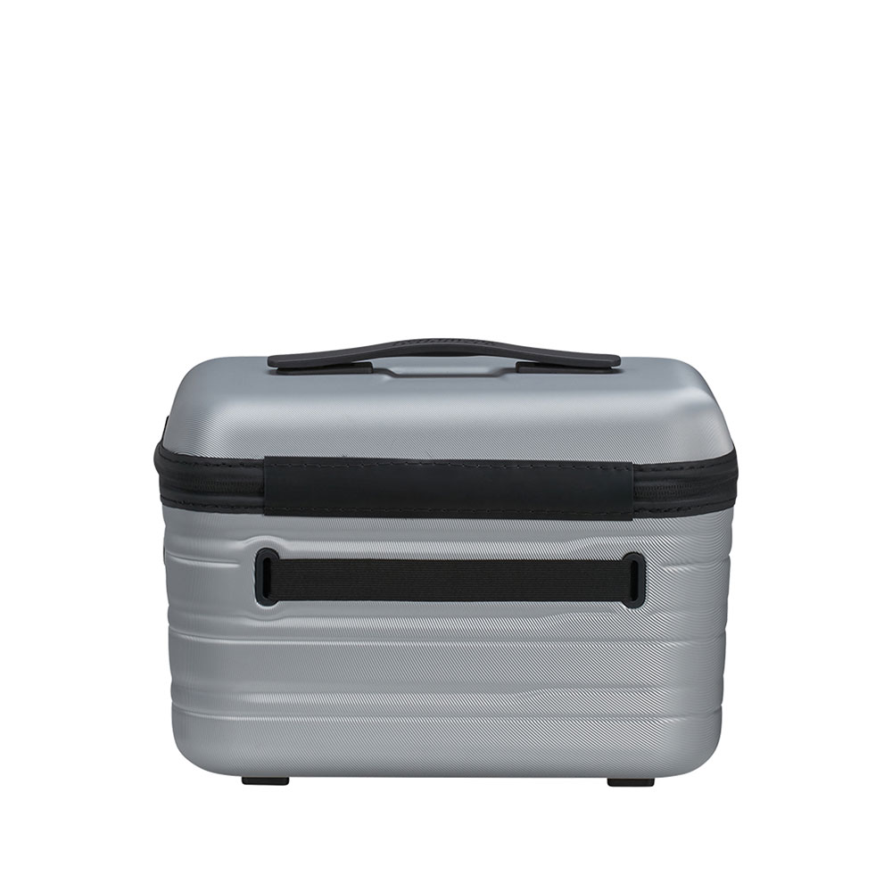 Flashline beauty case rigido, fornito di pratico divisorio interno, tracolla amovibile e smart sleeve posteriore per l'aggancio al trolley, conferendo comfort e praticità.