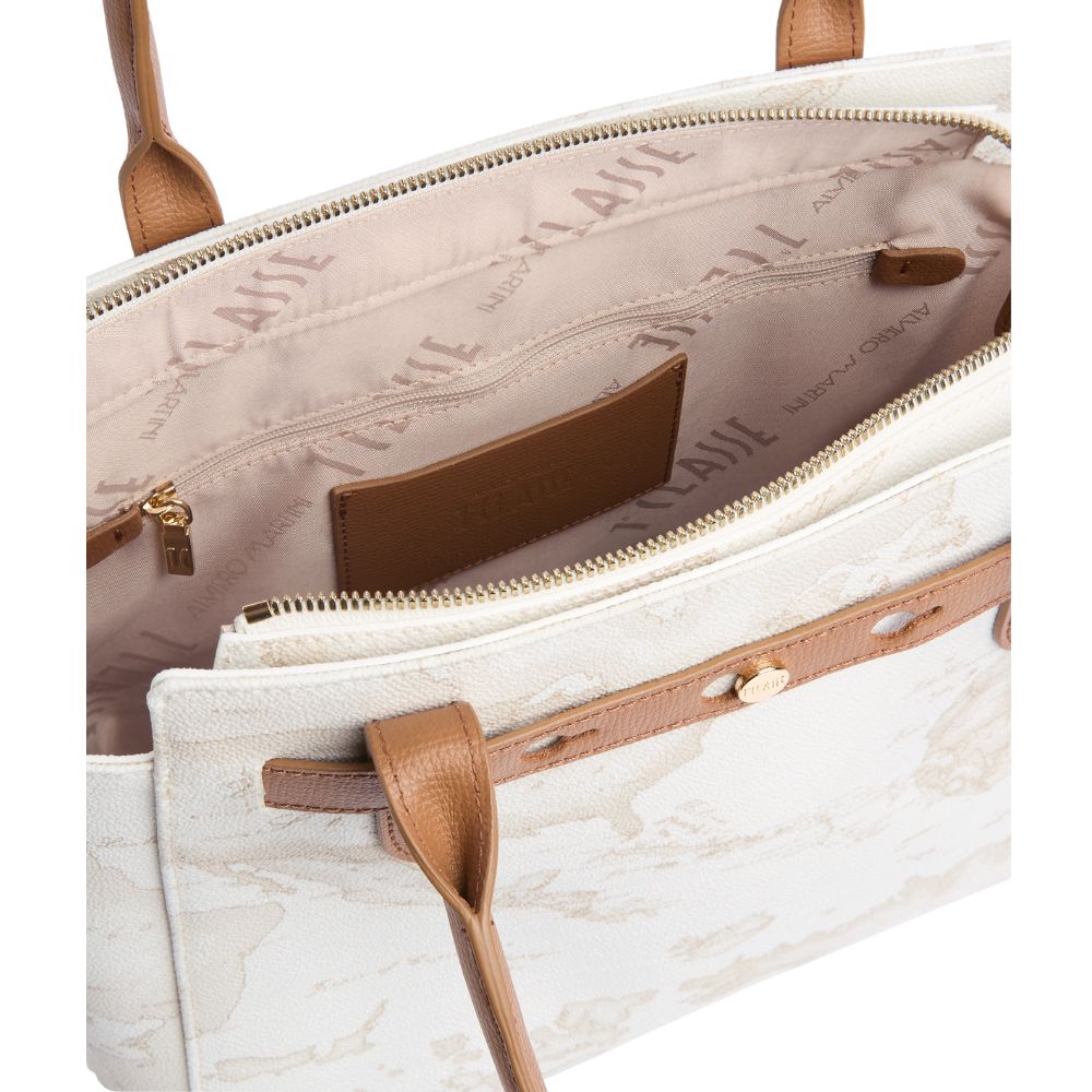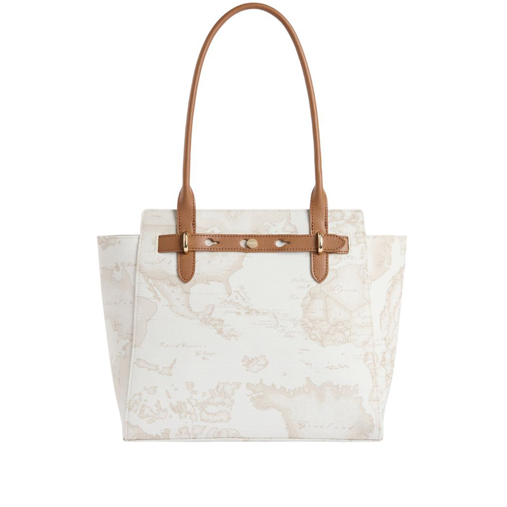 Die Escape Geo Einkaufstasche von Alviero Martini ist in der speziellen Version aus dem Stoff Geo White erhältlich, kombiniert mit feinem granatfarbenem Leder für eine zeitgemäße Sommerstimmung. Der Band zeigt weiche Linien an den Seiten und geformt oben, in einem strukturierten Look mit bewegten Details auf der Vorderseite: Die Palette aus feinem Granatapfelleder kreuzt sich mit den Griffen der Griffe, führt durch Metallstege und beherbergt die 1A-Klasse-Tülle in hellem Gold. Kombiniere es mit breiten Hemden und Ledersandalen für ein Sommeroutfit, das Funktionalität und Eleganz vereint.
