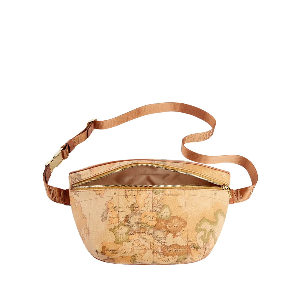 Die praktische und vielseitige Kängurutasche Geo Classic von Alviero Martini kann um die Taille oder als Umhängetasche getragen werden. Das ikonische Design wird durch glatte Lederdetails und ein 1A Classe-Logo-Band veredelt, das mit einer Schnalle in Hellgold verschlossen ist. Ein Gewinner-Verbündeter für den urbanen Look auf Reisen oder in der Stadt.