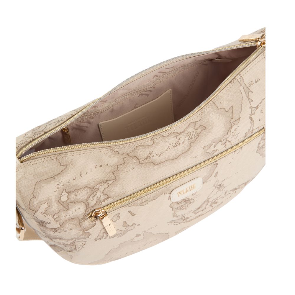 Die mittlere Halbmond-Umhängetasche Soft Petals von Alviero Martini wird im sommerlichen Stil durch den Geo Safari-Druck interpretiert, kombiniert mit dem Detail aus glattem Leder an der Seite, das an die Form der australischen Eukalyptusblätter erinnert. Der weiche Stoff macht sie leicht und wasserdicht, perfekt auch für die Zwischensaison. Das Volumen wird durch eine Fronttasche mit Reißverschluss vervollständigt, die mit einem Lederpatch mit 1A-Klasse-Logo in hellem Gold versehen ist. Ein funktionaler Begleiter, der in den leuchtenden Farben und Denim der Saison hervorsticht und jeden Look erhellt.