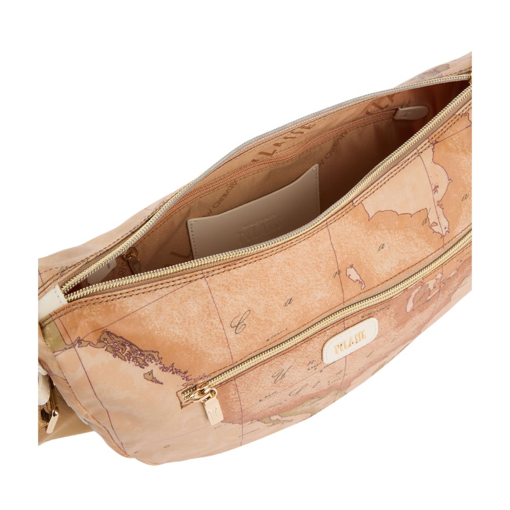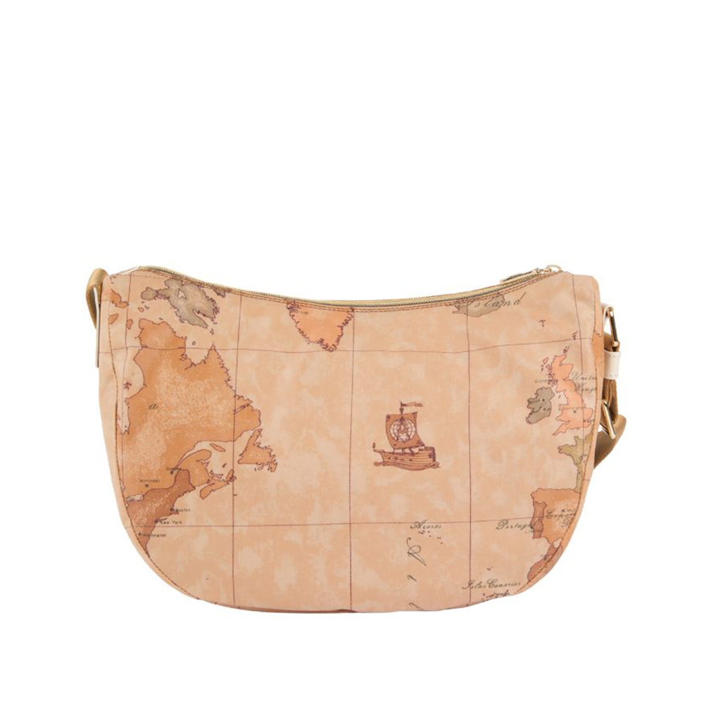 Die mittlere Halbmond-Umhängetasche Soft Petals von Alviero Martini ist dank des weichen, funktionalen und wasserdichten Stoffes in der Zwischensaison unverzichtbar. Das Modell kombiniert den ikonischen Geo Classic-Aufdruck mit Details aus glattem Leder an der Seite, geformt nach den Linien der australischen Eukalyptusblätter und in saisonalen Farben gehalten; das Lederpatch mit dem 1A Klasse-Logo hebt die geschlossene Reißverschlusstasche hervor. Das Ergebnis ist eine weiche, leichte und geräumige Tasche, die durch markante Details einzigartig gemacht wird, die jeden Tag ansprechend aussehen lassen.