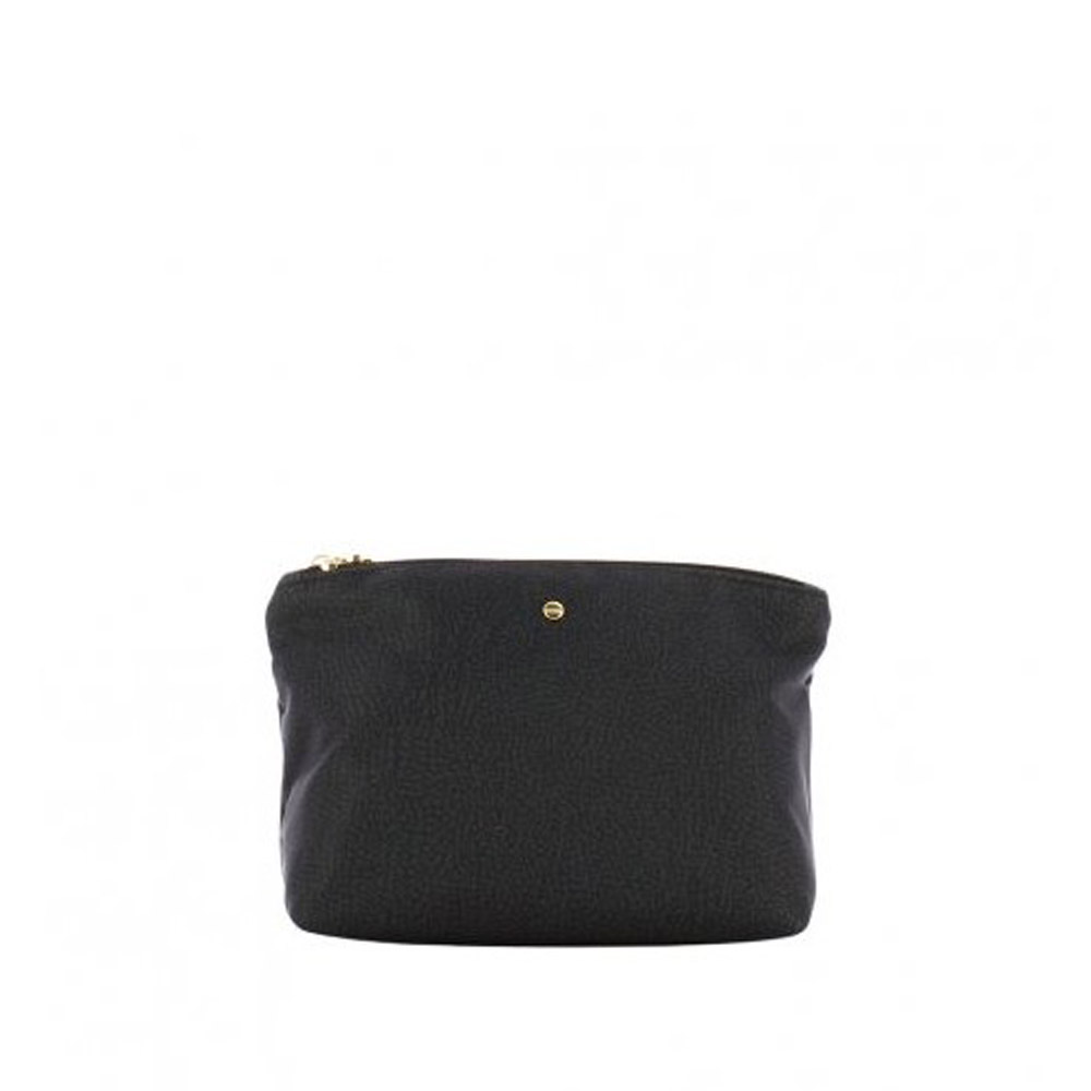 Das Beautycase von Borbonese ist aus Nylon mit OP-Druck. Die Schraube, Symbol der Marke, wird zu einem dekorativen Element auf der Vorderseite des Clutch. Unverzichtbar in jeder Tasche und auch als Beauty-Case einsetzbar.