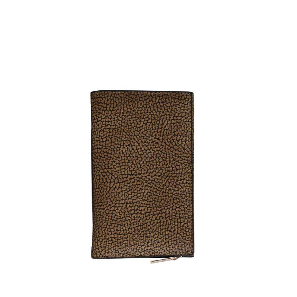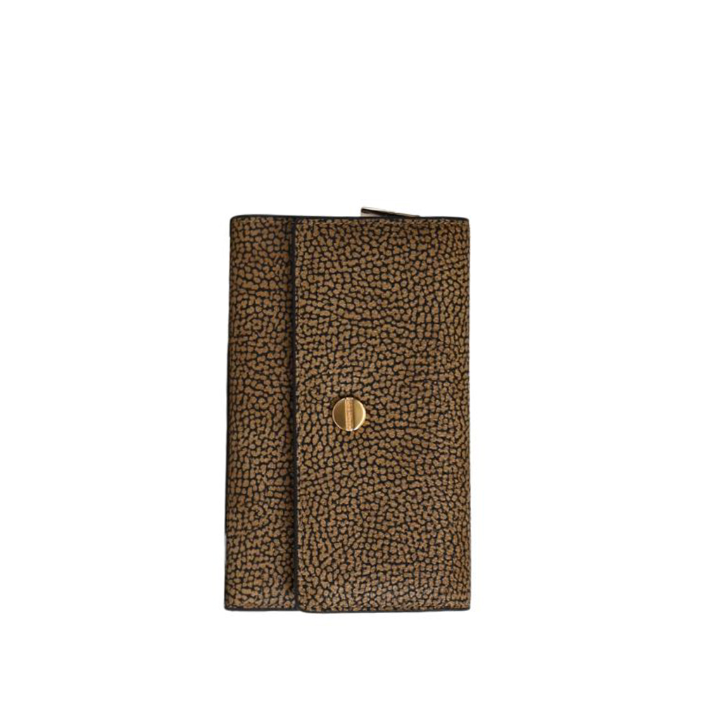 Mittlere Brieftasche aus beschichtetem Canvas und Kalbsleder.