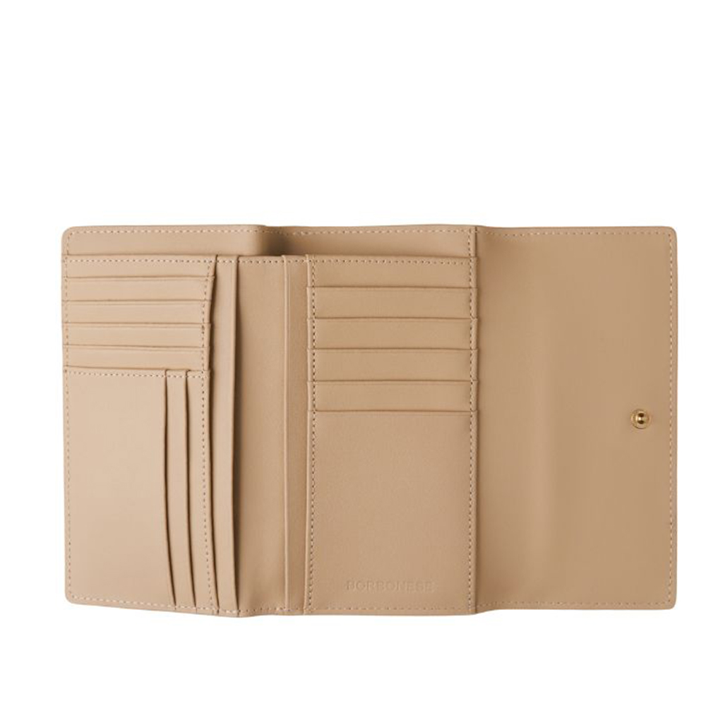 Mittlere Brieftasche aus beschichtetem Canvas und Kalbsleder.