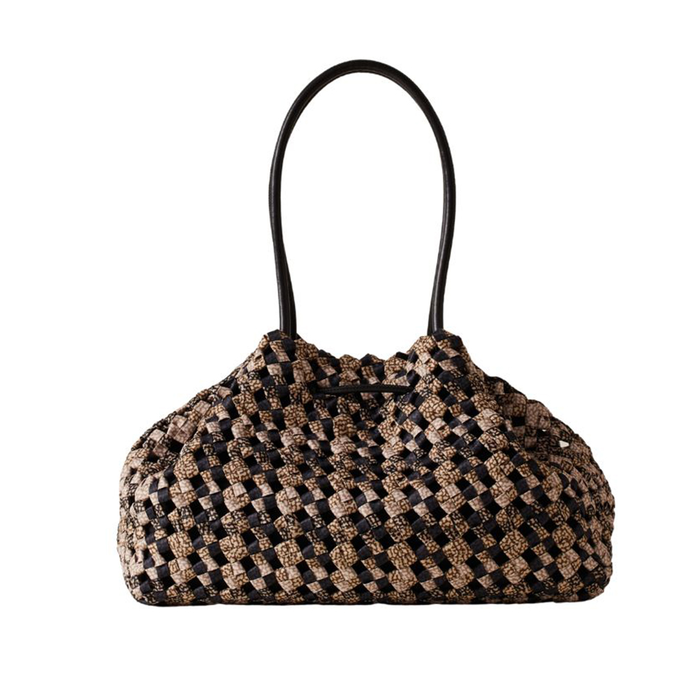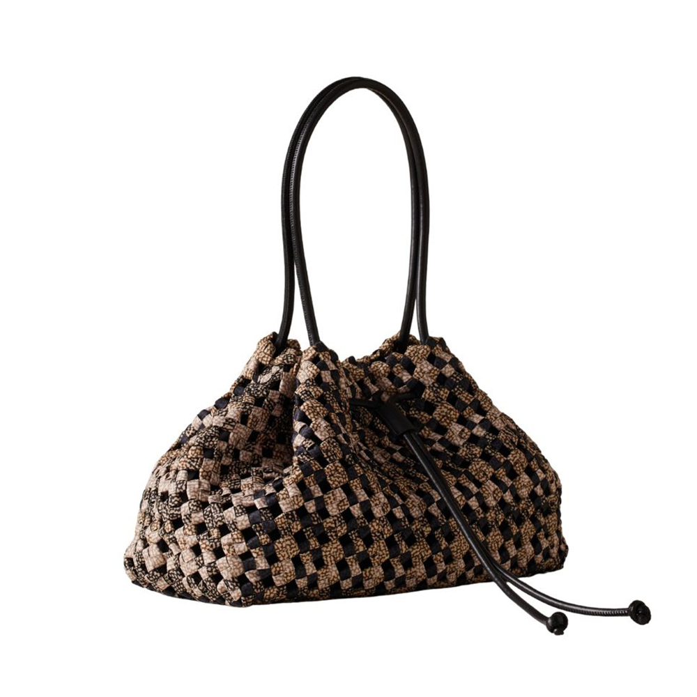 Die weiche und geräumige Schultertasche von Borbonese zeigt einen Retro-Reiz, der sich jedoch mit einem eleganten und schicken Look aktualisiert.