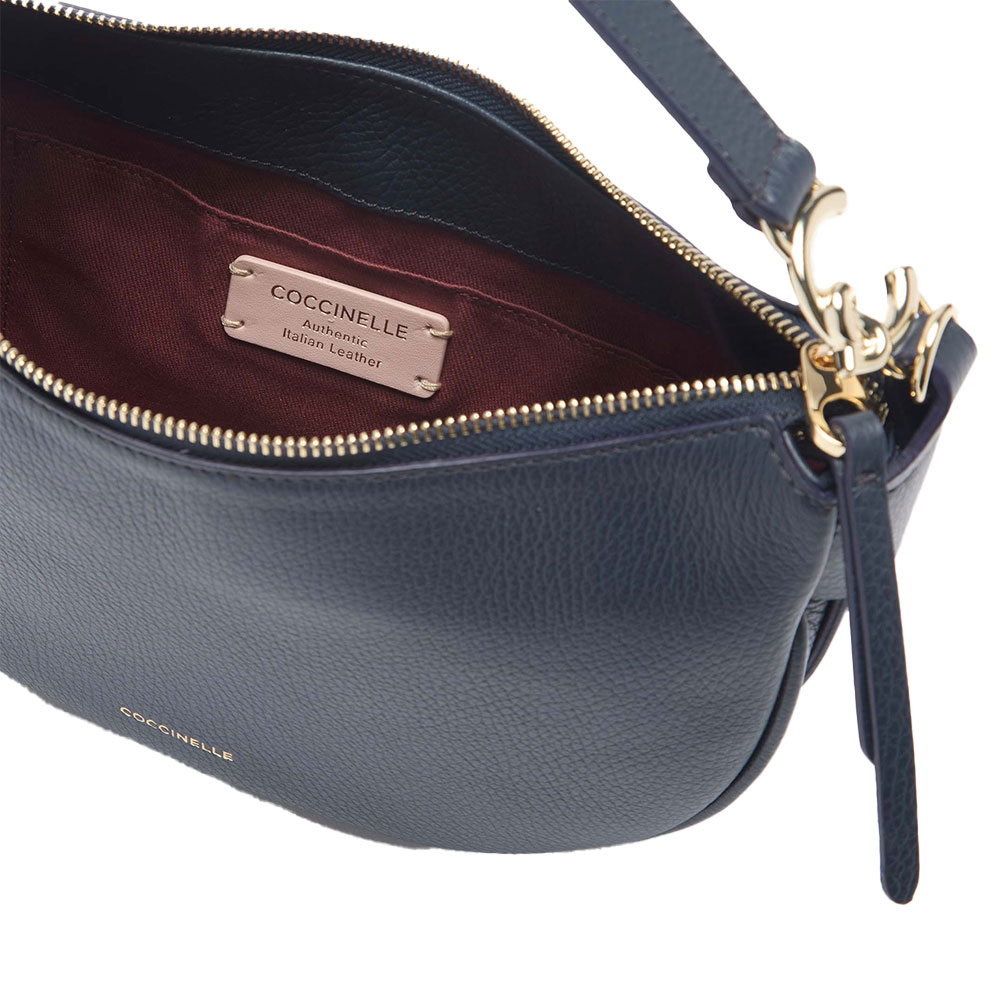 Die C-Easy Tasche von Coccinelle hat eine geschwungene Linie, die die Schönheit des Leders hervorhebt. Das Herzstück des Designs ist das metallische Detail am Griff, das neue C-Me-Logo. Diese Tasche zeichnet sich durch die Insellatura aus, die durch die Weichheit des Leders gegeben ist und ihr Vielseitigkeit und Haltung verleiht, während die seitlichen Lederbänder ein zusätzliches Detail der Weiblichkeit darstellen.