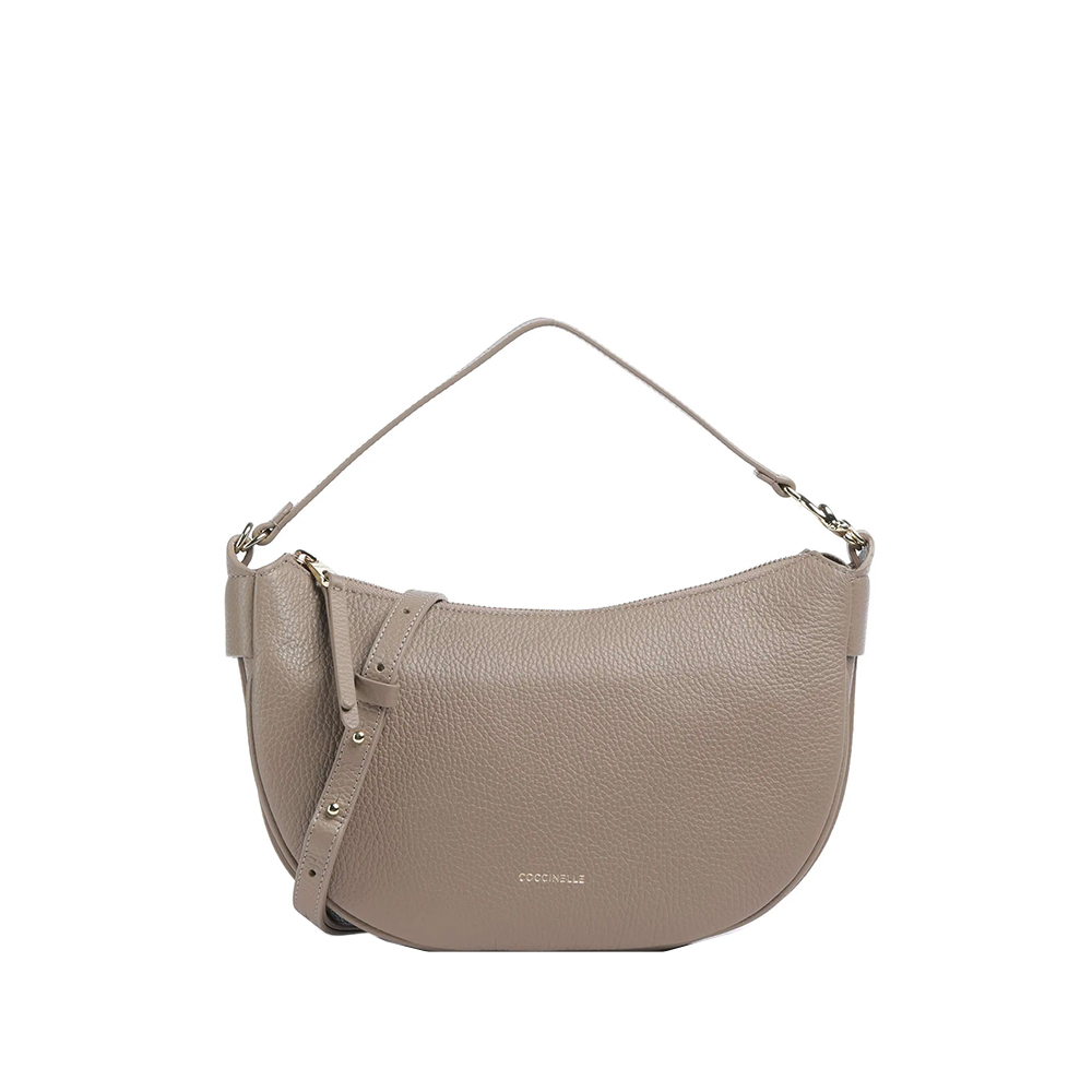 Die C-Easy Tasche von Coccinelle hat eine geschwungene Linie, die die Schönheit des Leders hervorhebt. Das Herzstück des Designs ist das metallische Detail am Griff, das neue C-Me-Logo. Diese Tasche zeichnet sich durch die Insellatura aus, die durch die Weichheit des Leders gegeben ist und ihr Vielseitigkeit und Haltung verleiht, während die seitlichen Lederbänder ein zusätzliches Detail der Weiblichkeit darstellen.