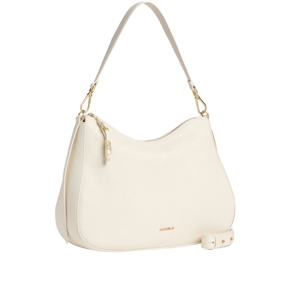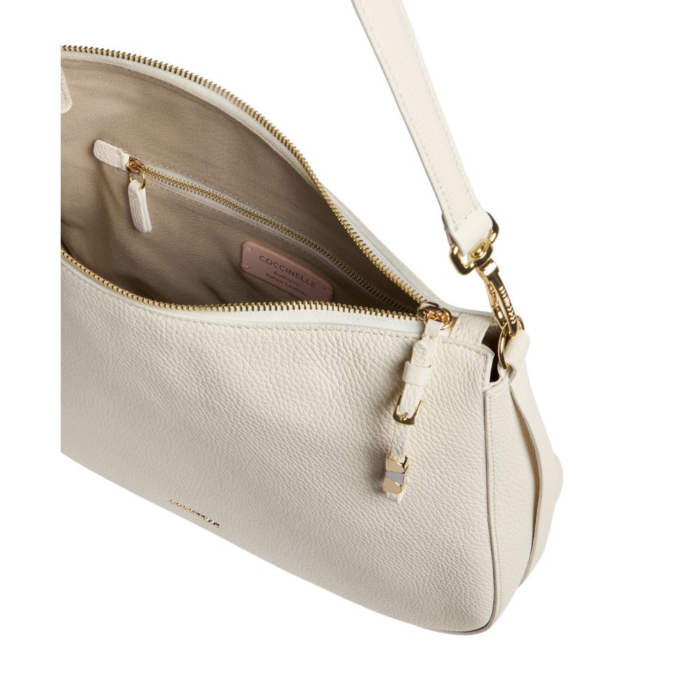 Die Schultertasche Nory hat eine geschwungene Linienführung, die die Schönheit des Leders unterstreicht. Diese Tasche zeichnet sich durch die Abisolierung aus, die durch die Weichheit des Leders gegeben ist, was ihr Vielseitigkeit und Eignung verleiht, wobei die seitlichen Lederbänder ein zusätzliches Detail der Weiblichkeit verleihen.