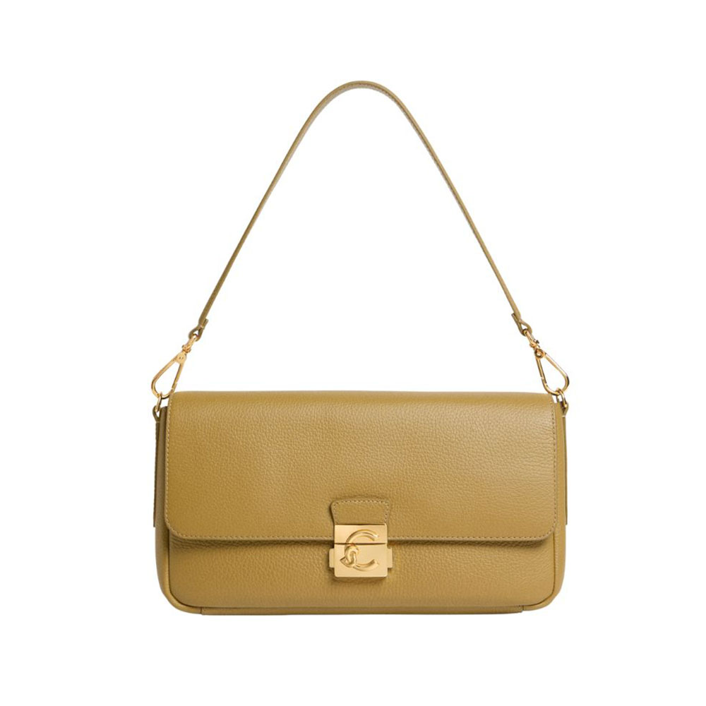 Die Schultertasche von Coccinelle hat eine raffinierte Silhouette mit elegantem Stil und modernem Design, bereichert durch das metallische Detail an der Basis des Griffs.