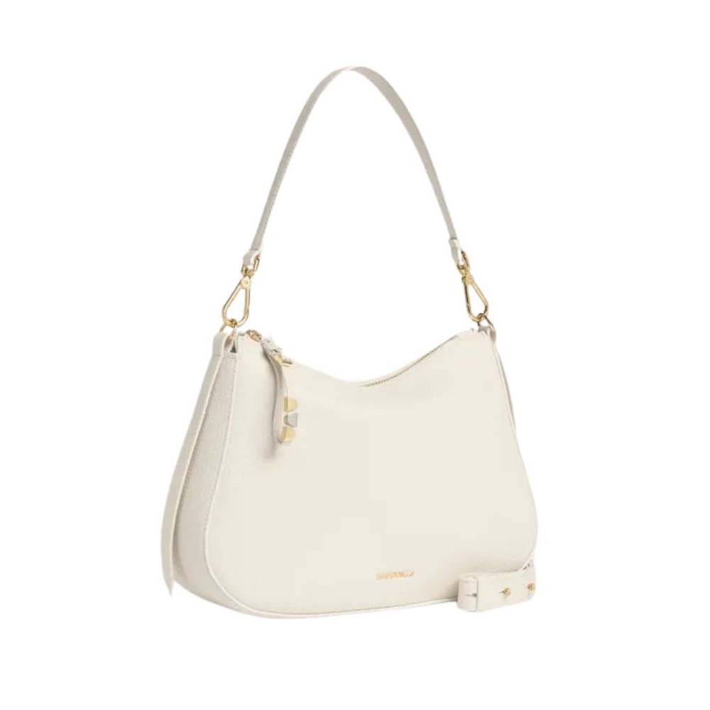 Die Schultertasche Nory hat eine geschwungene Linienführung, die die Schönheit des Leders unterstreicht. Diese Tasche zeichnet sich durch die Abisolierung aus, die durch die Weichheit des Leders gegeben ist, was ihr Vielseitigkeit und Eignung verleiht, wobei die seitlichen Lederbänder ein zusätzliches Detail der Weiblichkeit verleihen.