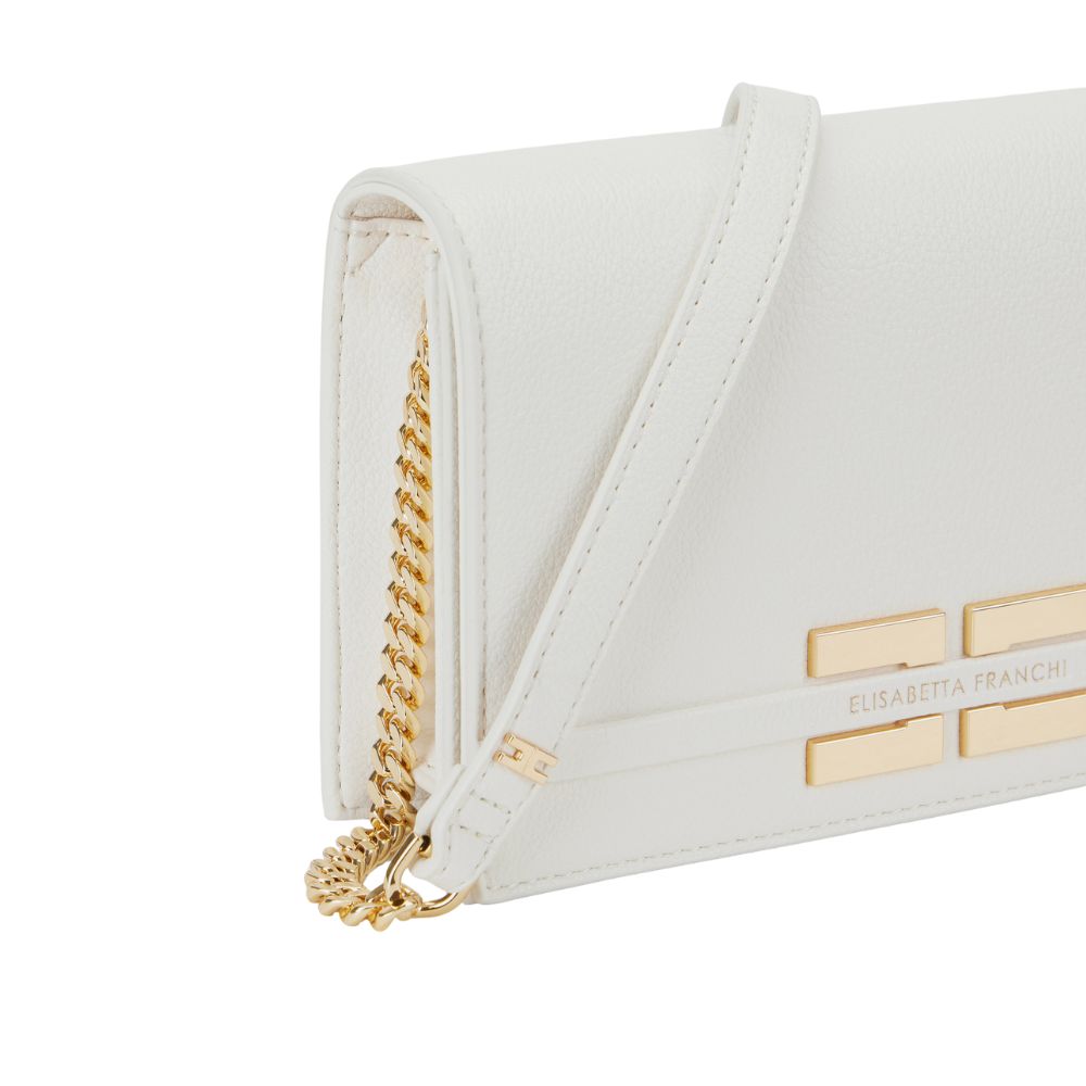 Tasche von Elisabetta Franchi aus synthetischem Material mit Leder-Effekt-Textur. Mit Gurtband, hat es eine kompakte und lineare Form und ist mit einer Logo-Plakette auf der Vorderseite verziert.