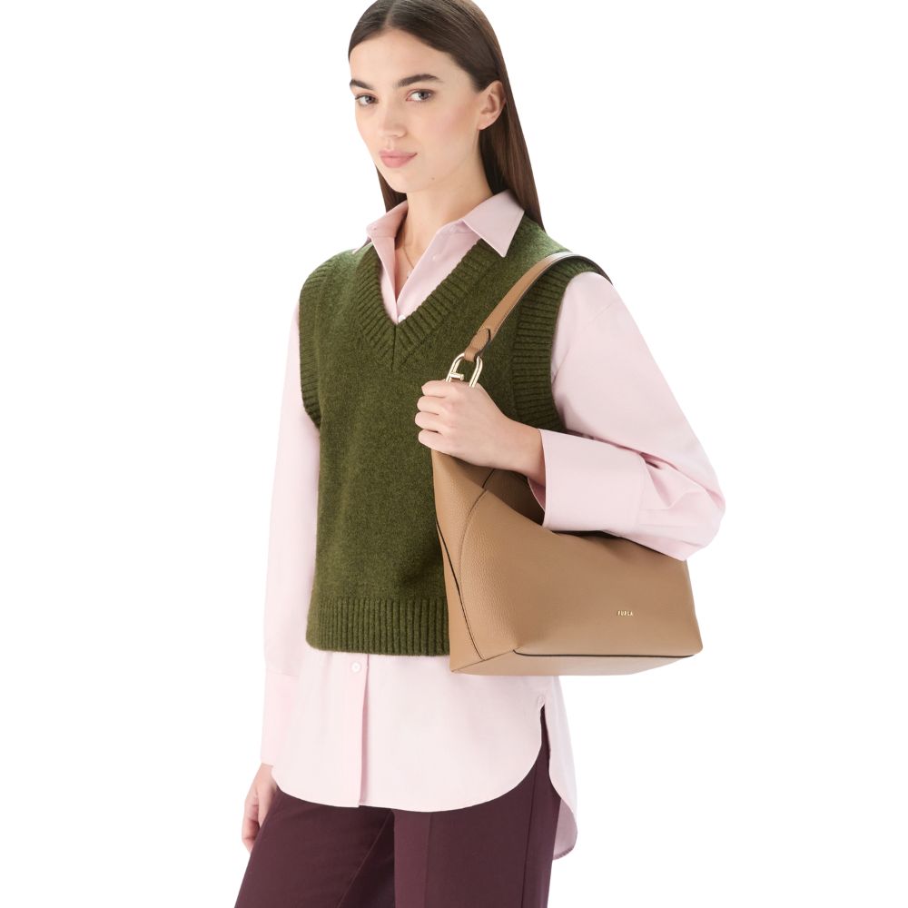 Die Lara Schultertasche von Furla ist ein perfektes Accessoire für Arbeit und Freizeit. Hergestellt aus hochwertigem, marmoriertem Leder mit einem reichen und natürlichen Touch, ist es mit dem ikonischen Arco-Sfera-Metall-Logo auf der Schulter verziert. Die Tasche ist groß genug, um Ihre persönlichen Gegenstände zu verstauen.