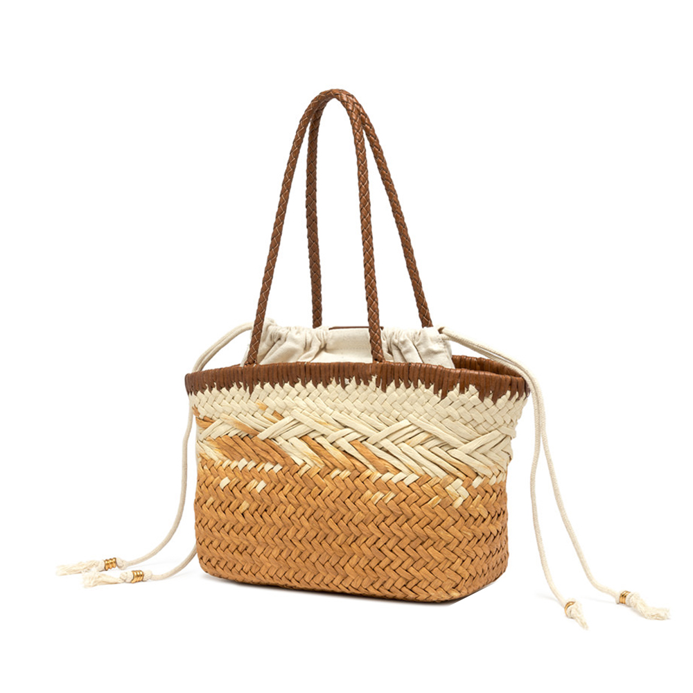 Paloma ist die neue Tasche von Gianni Chiarini, aus natürlichem Stroh gefertigt, mit einem leichten und modernen Look. Gekennzeichnet durch einen Verschluss mit Kordelzug, ist es mit farbigen Nappen mit Metalldetails verziert. Praktisch und vielseitig ist es das ideale Accessoire, um die Sommerlooks stilvoll zu vervollständigen.