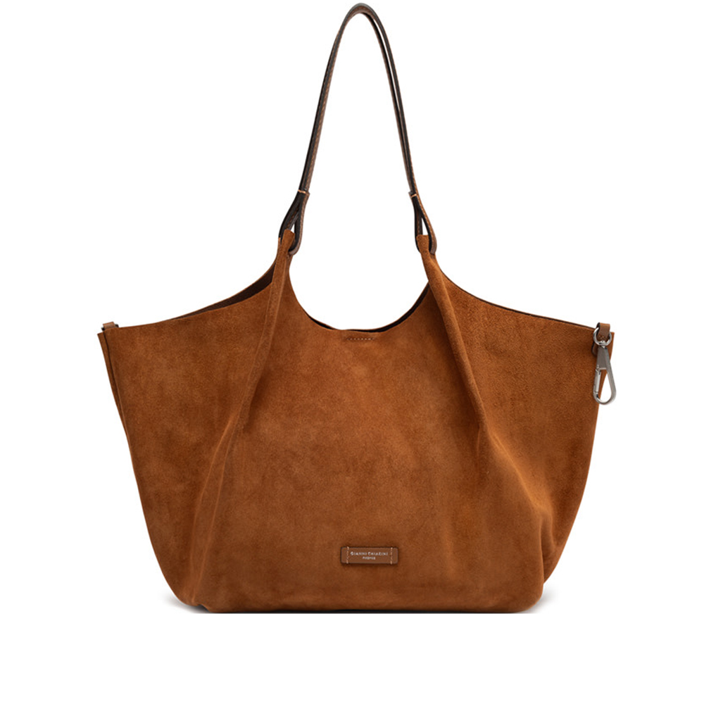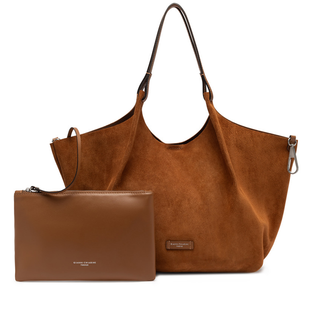 Die Schultertasche Dua von Gianni Chiarini zeichnet sich durch ein schlichtes, aber modernes Design aus. Hergestellt aus weichem Veloursleder, hat es ein einteiliges ungefüttertes Fach, obere Profile aus geprägtem Leder und doppelte Griffe in Ton. Praktisch und essentiell, ist es die ideale Tasche für jede Frau.