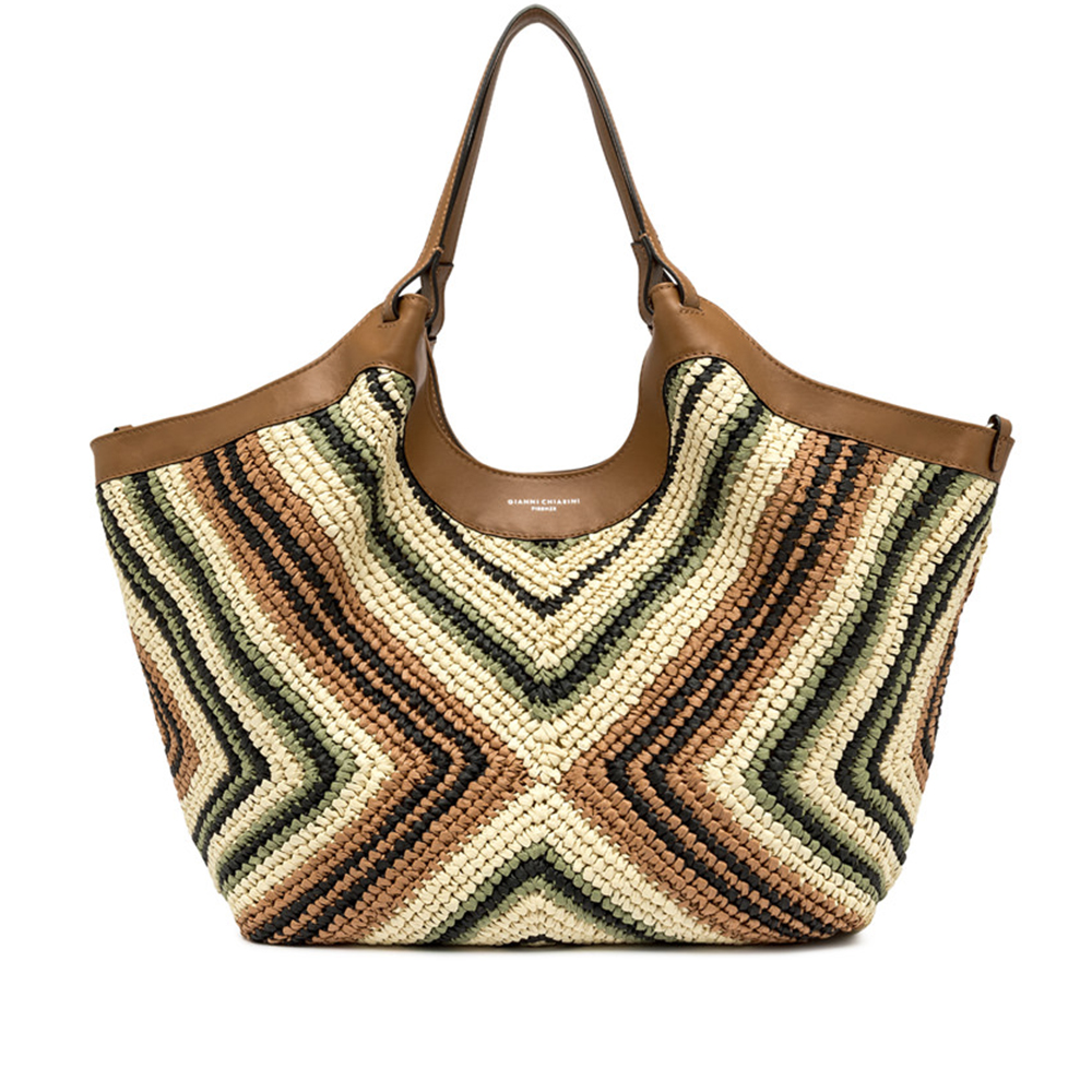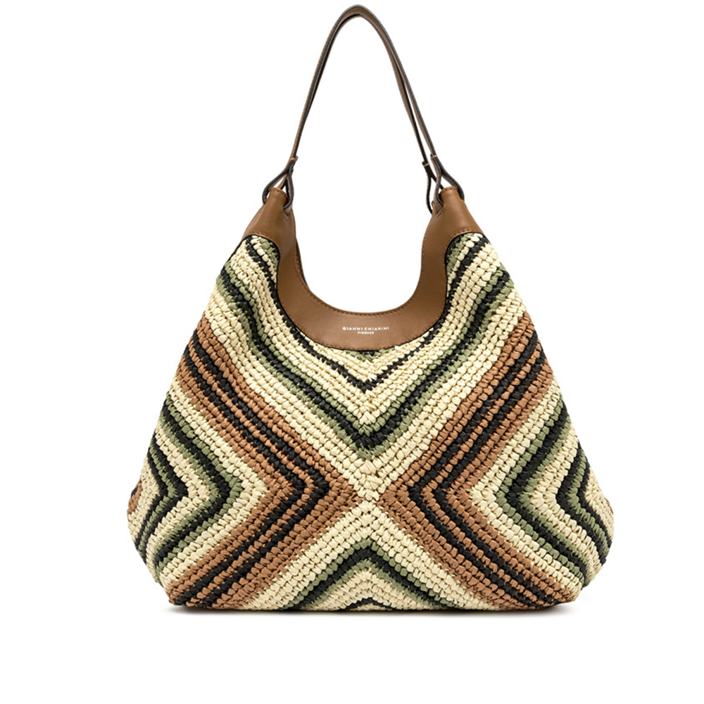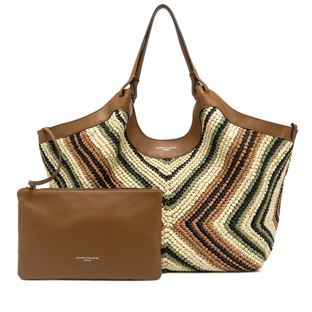 Die Ikone der Marke, die DUA-Tasche von Gianni Chiarini ist aus geflochtenem Stroh gefertigt und zeichnet sich durch eine einzigartige und unverwechselbare Textur aus. Ausgestattet mit einem Monosbereich, hat es obere Profile in Leder und doppelte Ärmel im Ton. Praktisch und essenziell, ist sie perfekt, um jeden Look stilvoll zu vervollständigen. Ausgestattet mit einer praktischen Pochette mit Reißverschluss.