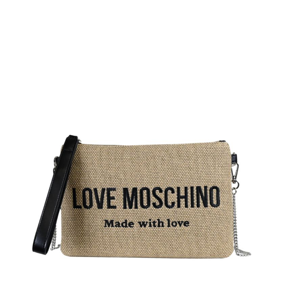Die Clutch von Love Moschino kann verwendet werden, um die eigene Tasche besser zu organisieren und wird so zum idealen Accessoire, das man immer bei sich hat.