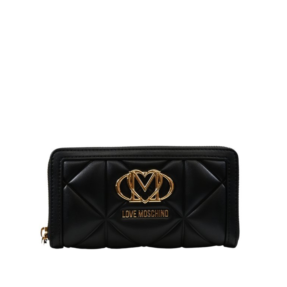 Das Embossed Portemonnaie von Love Moschino ist mit einem Logo aus Metall verziert. Sein Raum ist am besten organisiert, um das Notwendige mit Ordnung und Sorgfalt zu verstauen.