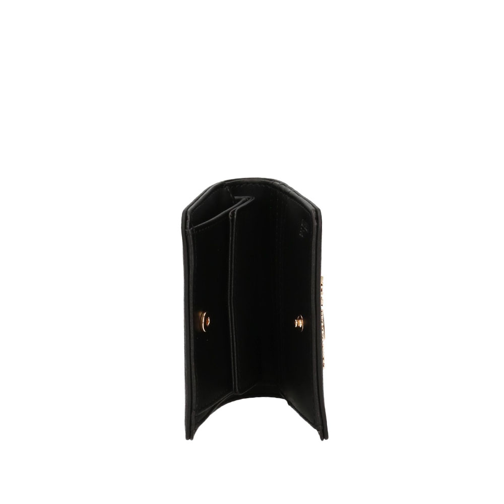 Das Portemonnaie von Love Moschino ist mit einem Schriftzug verziert. Sein Raum ist am besten organisiert, um das Notwendige mit Ordnung und Sorgfalt zu verstauen.
