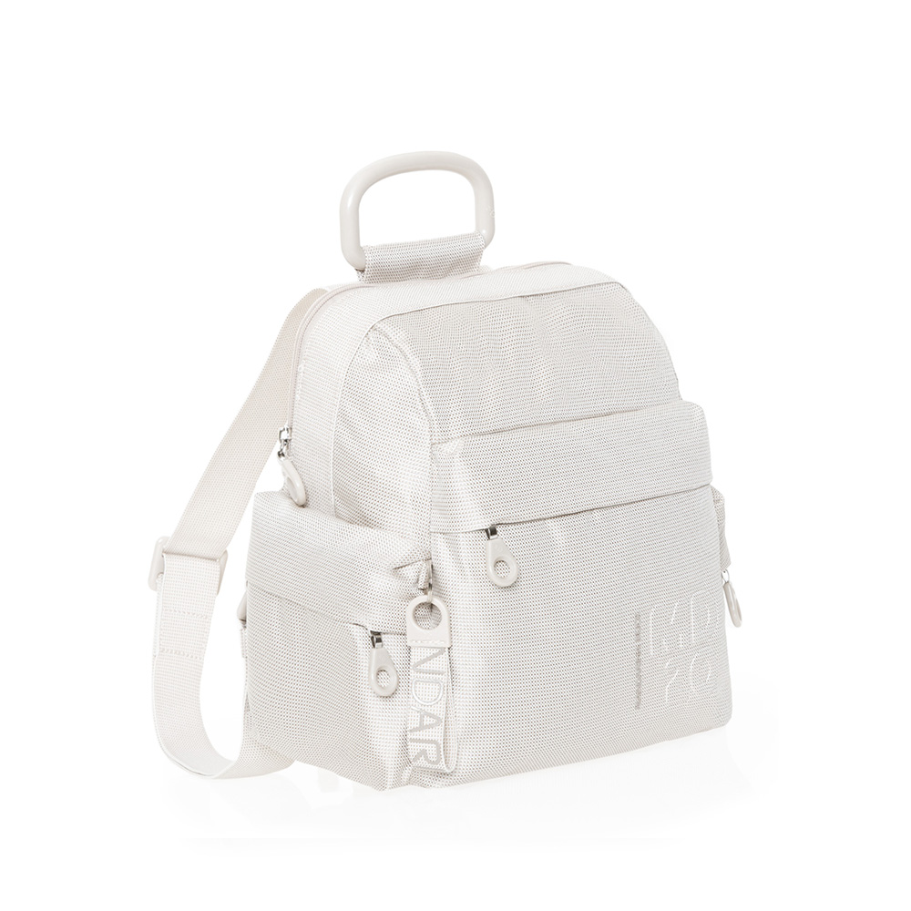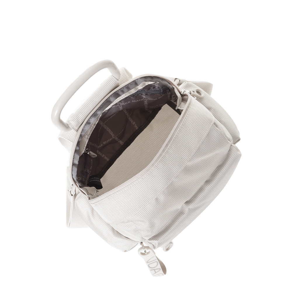 Der kleine MD-Rucksack von Mandarina Duck aus Mitrix, historischem Material der Marke, leicht, vielseitig und gekennzeichnet durch einen originellen changierenden Effekt. Die verstellbaren Schultergurte mit den Reißverschlusstaschen innen und außen machen es bequem und funktional. Durch das Restyling der Accessoires wirkt ihr Look moderner und zeitgemässer.