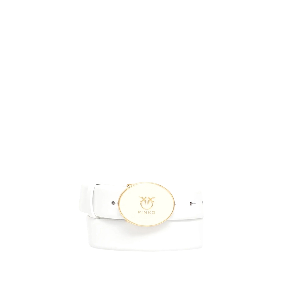 Gürtel aus weichem Pinko-Leder. Das Markenzeichen dieses Modells ist zweifellos die ovale emaillierte Schnalle mit PINKO-Schriftzug und Love Birds-Logo. Der Innenraum besteht zum Teil aus einem Material, das aus regenerierten Lederfasern gewonnen wird. Essentiell und raffiniert, ist dieses Accessoire das fehlende Stück in Ihren Tages-Looks und nicht nur.