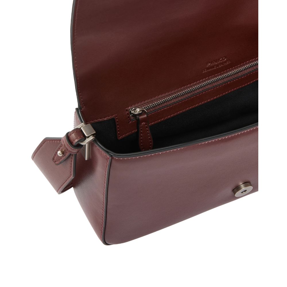 Die klassische Love Bag Slouchy von Pinko mit länglicher, rechteckiger und weicher Form ohne starre Strukturen. Der Verschluss der Tasche ist mit der Love Birds Diamond Cut Metallschnalle personalisiert. Die Tagestasche ist mit einem Leder-Schultergurt ausgestattet, der mit einer Schnalle verstellbar ist, um die Tasche über die Schulter zu tragen, und einem Kettenriemen mit einem Leder-Schultergurt, um die Tasche nach Bedarf anzupassen. Für einen zusätzlichen Hauch von Style, besonders bei besonderen Anlässen, können Sie die weiche Tasche auch mit der Hand tragen.