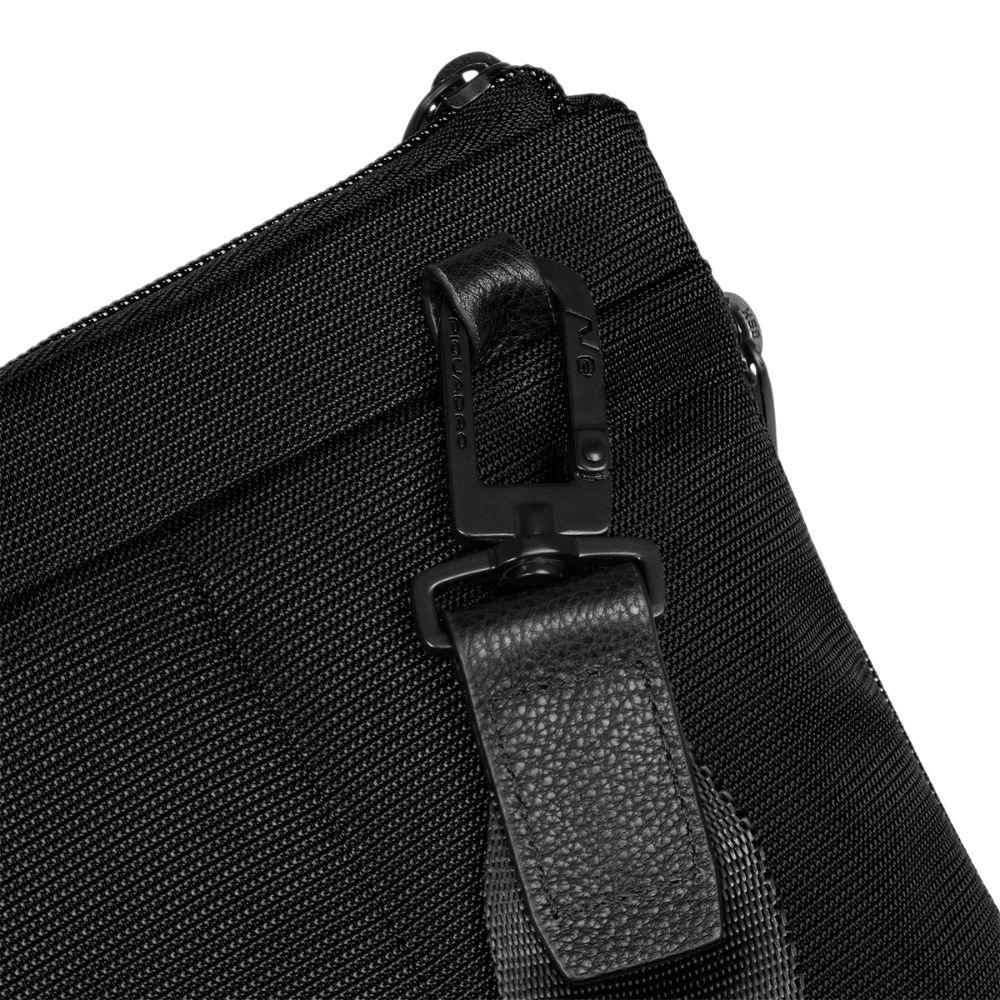 Erweiterbare Laptop- und iPad®-Tasche aus recyceltem Stoff und Leder mit stoßdämpfendem Schutz, Fächern für AirPods® und Piquadro Smart Tracker