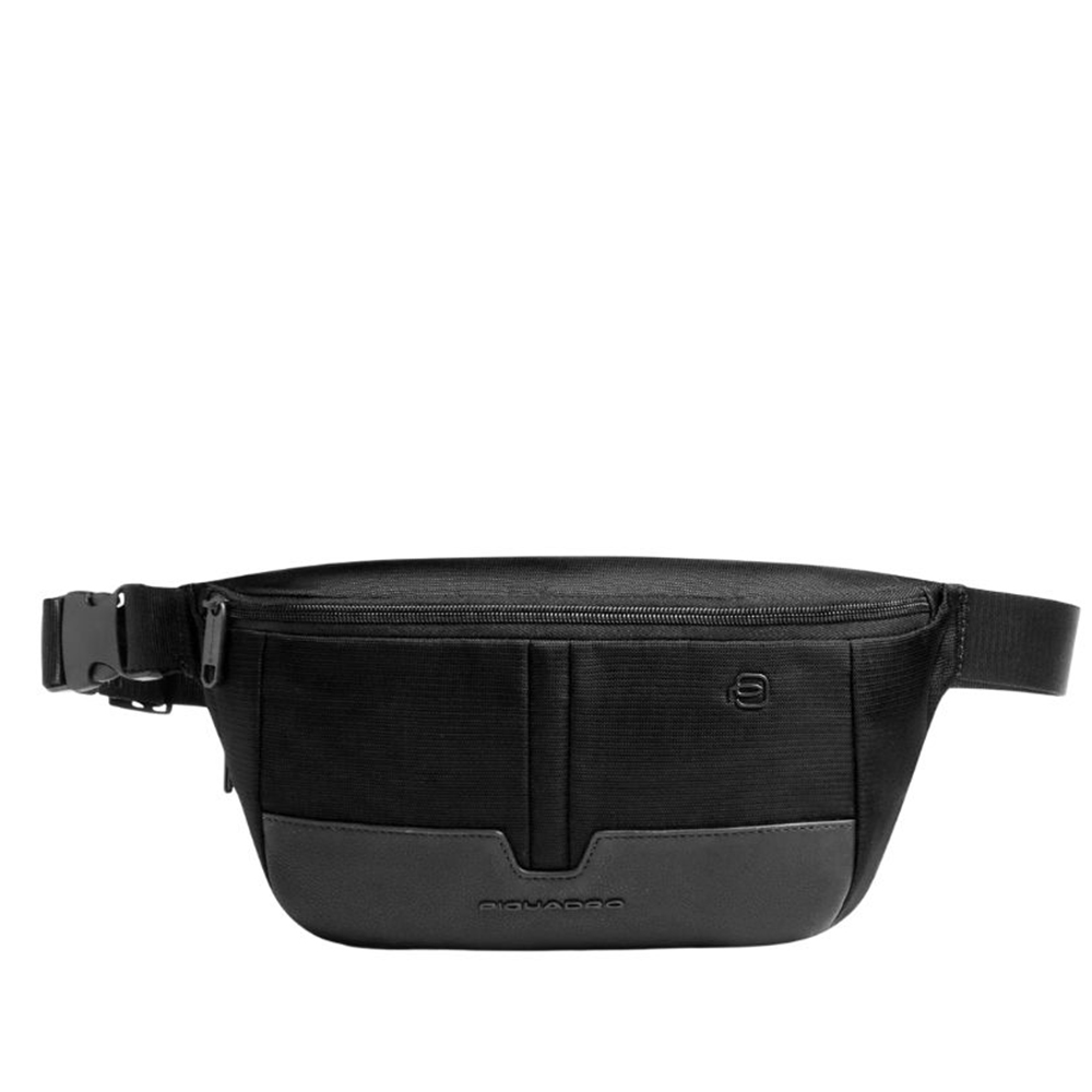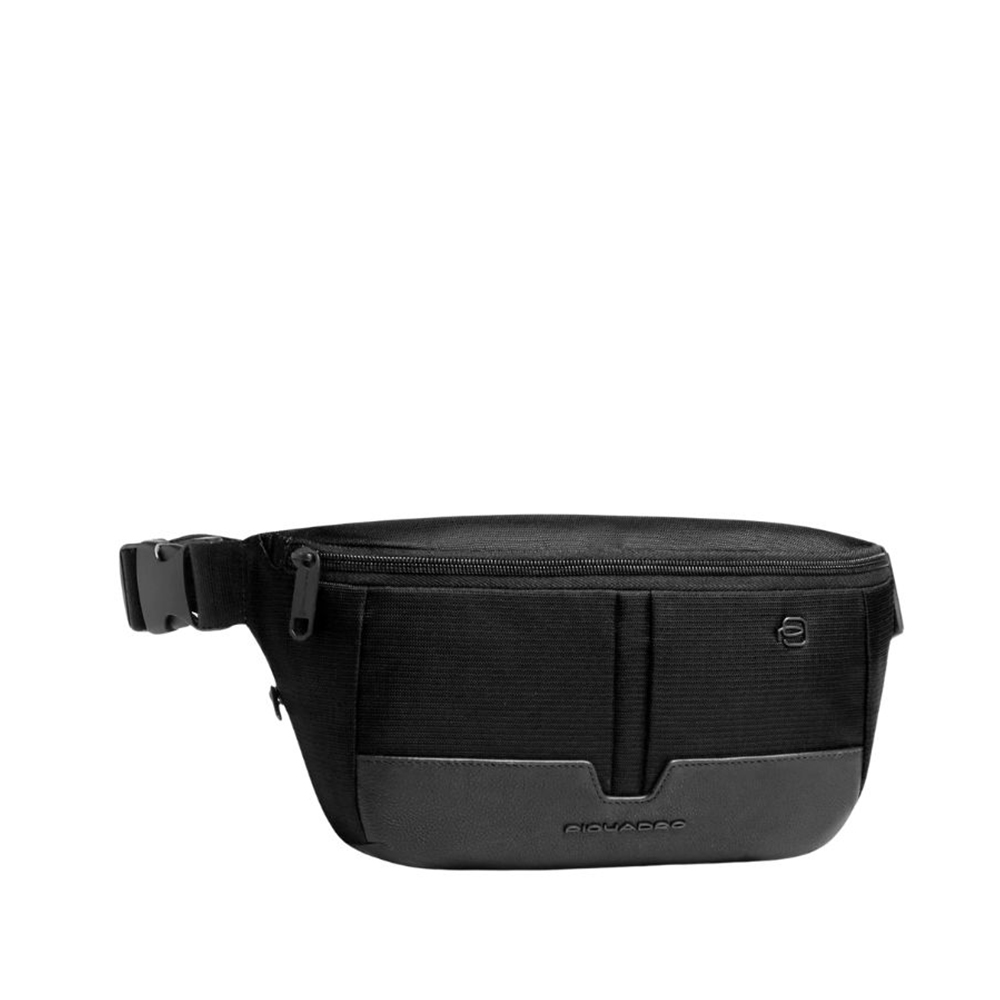 Bauchtasche für Herren von Piquadro erweiterbar aus recyceltem Stoff und Leder mit Tasche für Piquadro Smart Tracker und RFID-Schutz.