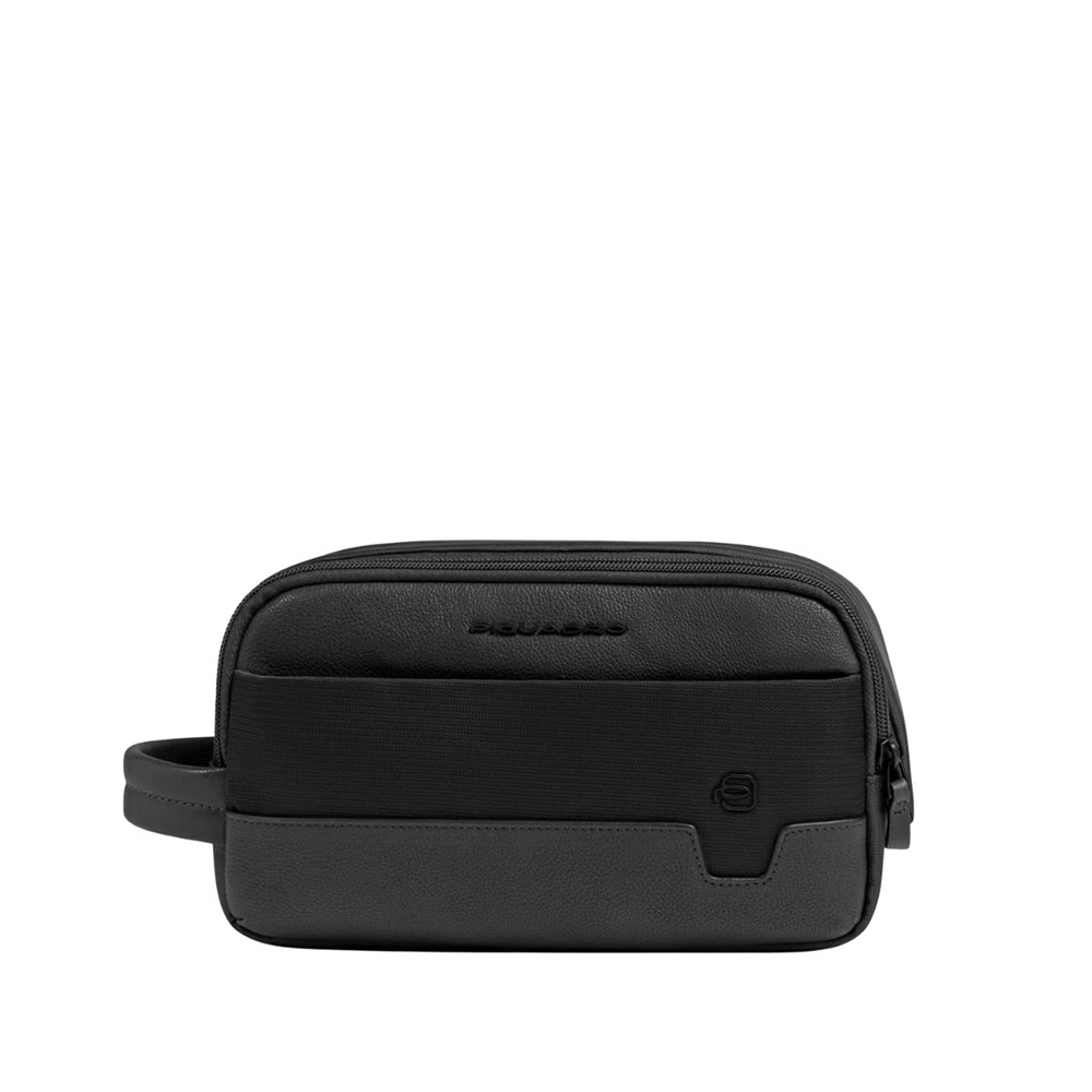 Beauty Case für Herren von Piquadro aus recyceltem Stoff und Leder mit zwei Fächern.