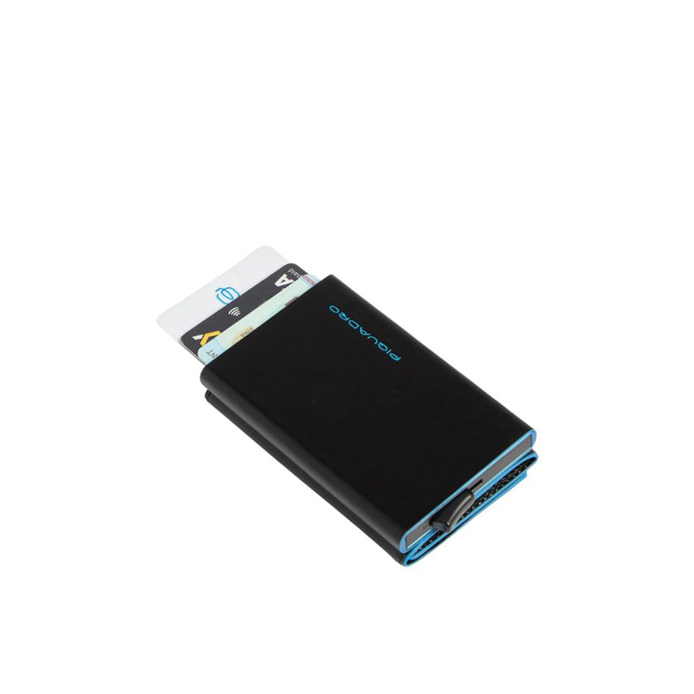 Das Compact Wallet Blue Square von Piquadro ist für Banknoten und Kreditkarten mit Münzhalter, Schiebesystem und RFID-Betrugsschutz.