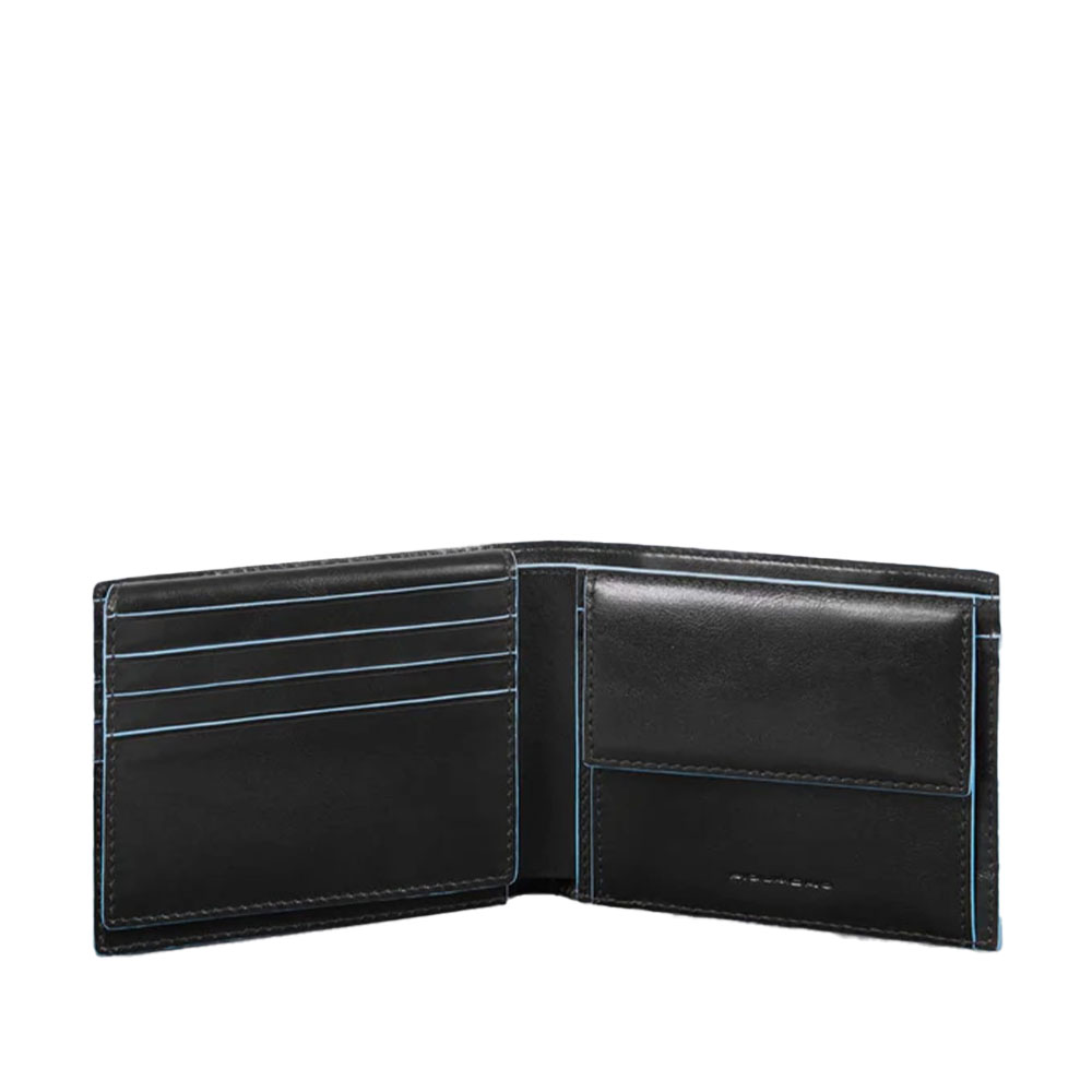 Brieftasche für Herren aus Leder mit Handzettel von Piquadro mit Dokumentenhalter, Kreditkartenetui und RFID-Schutz.