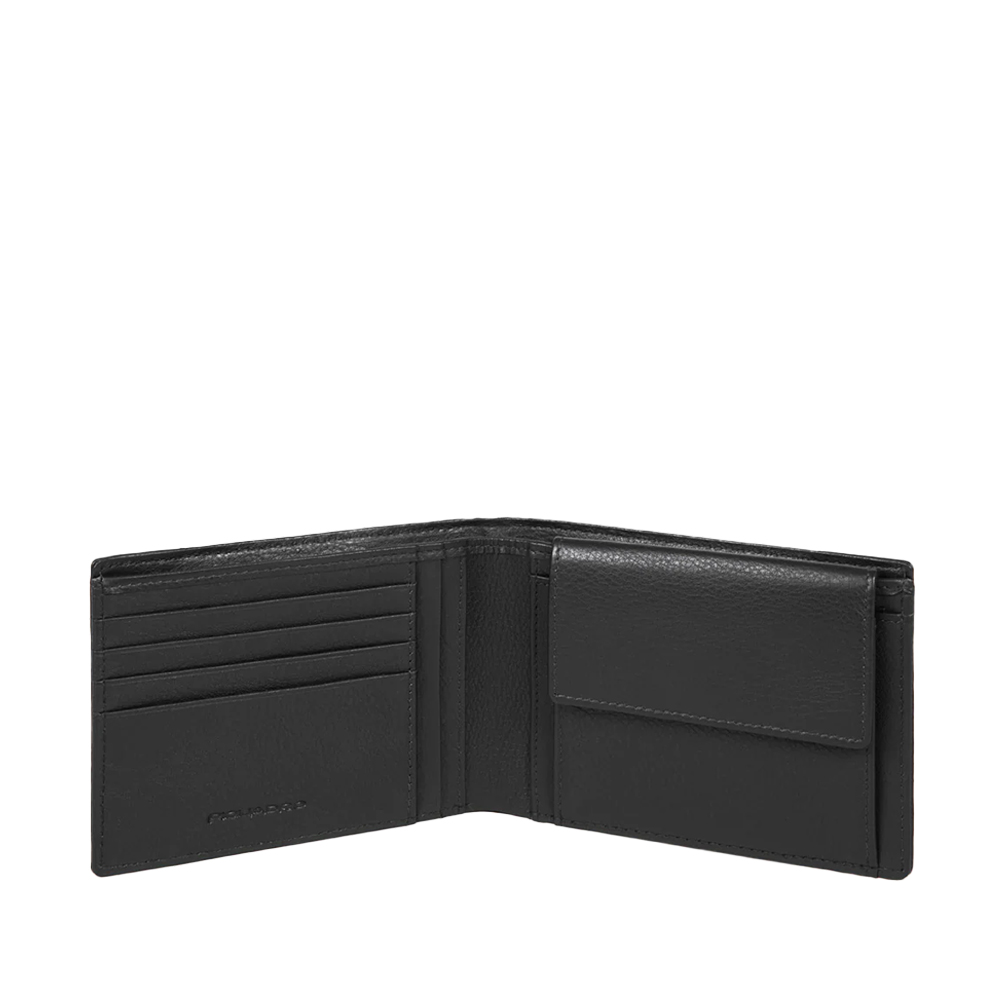 Herren-Portemonnaie von Piquadro mit geschlossenem Geldbeutel mit Knopf, bequem und praktisch.