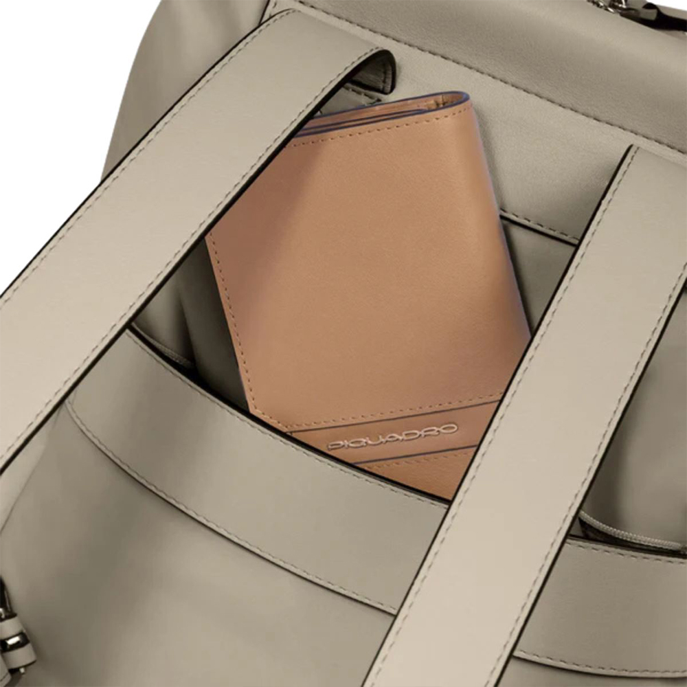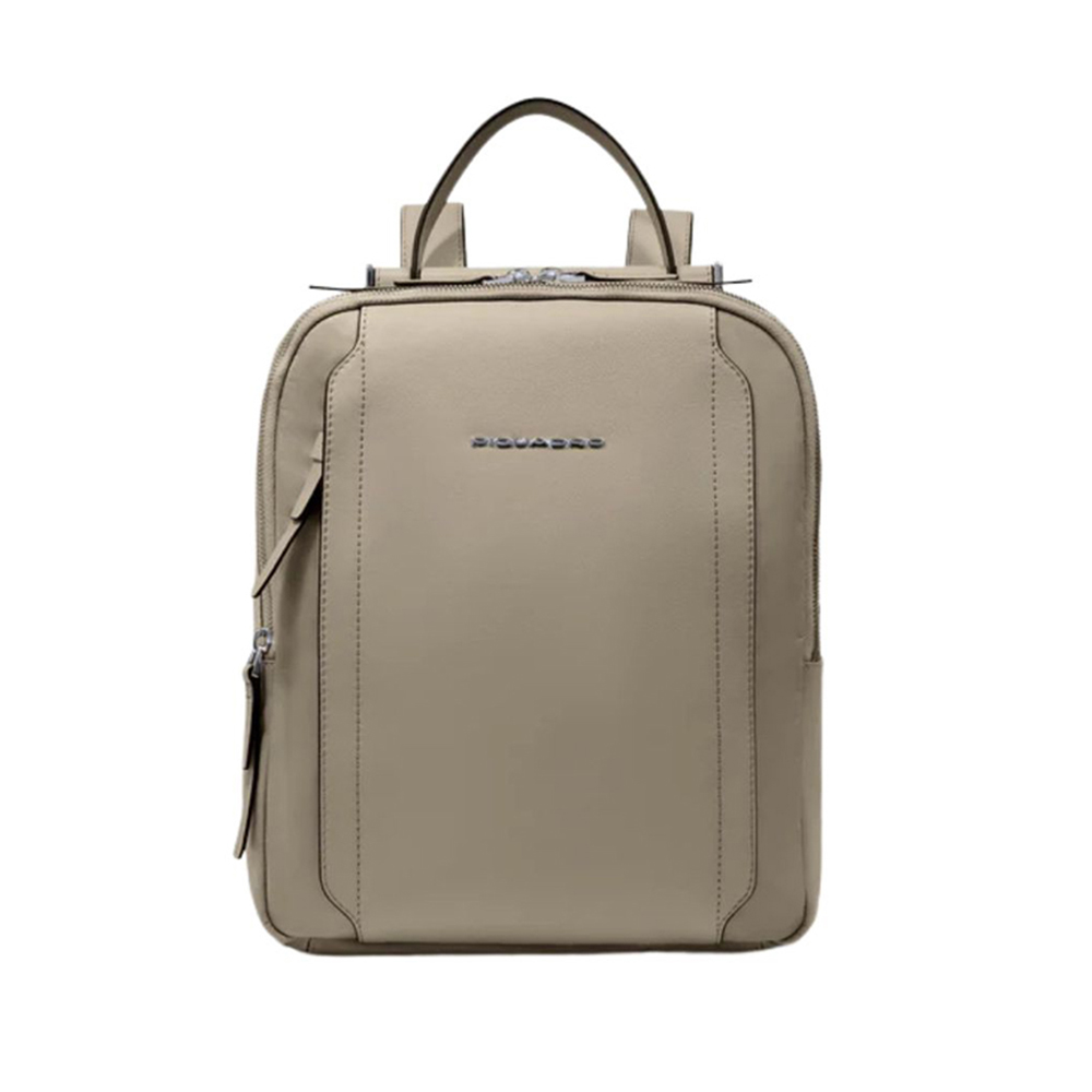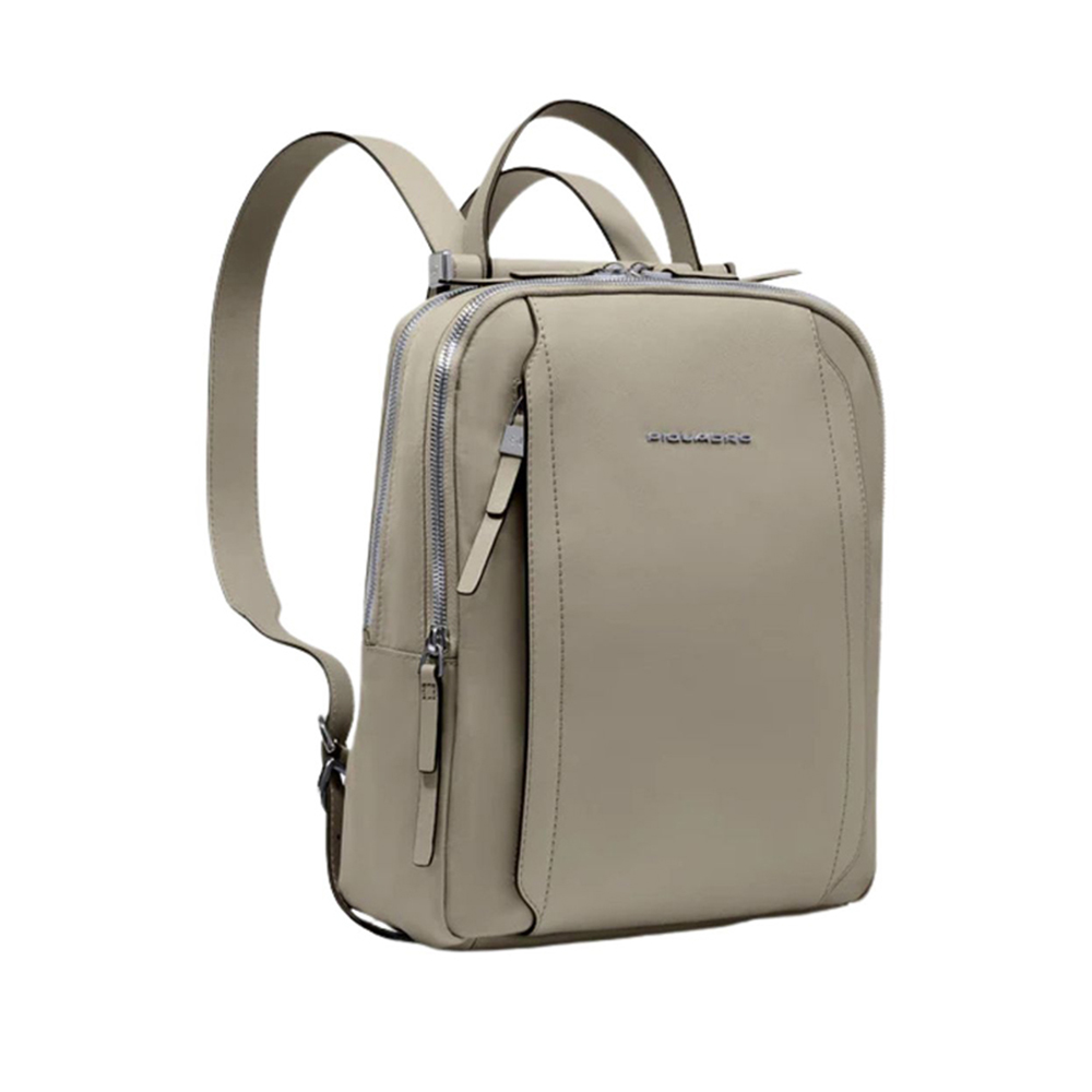 Lyra Rucksack für Frauen iPad Pro 12,9" von Piquadro aus recyceltem Stoff und Leder mit Stoßschutz und RFID.