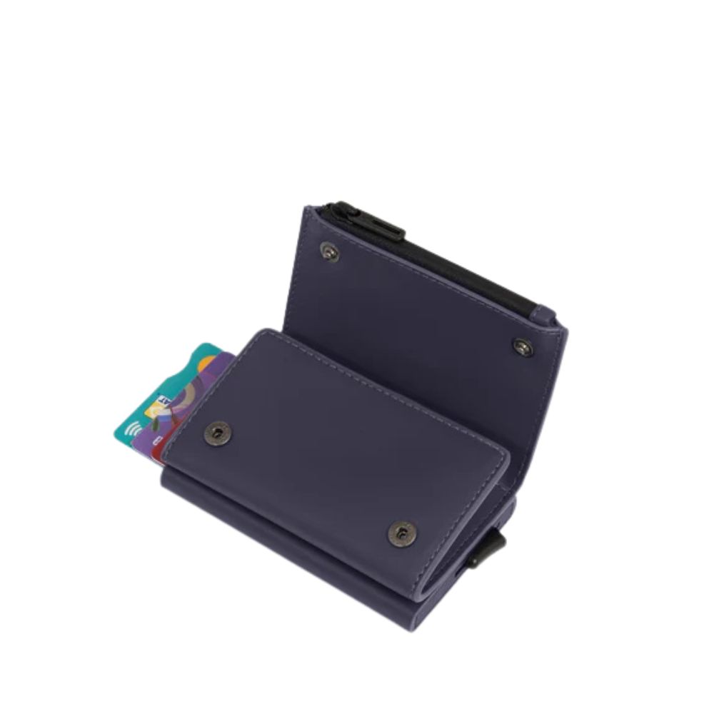 Kompakter Piquadro aus gummiertem und wasserfestem Stoff mit Pop-up-Kartenhalter, Geldtasche mit Reissverschluss und RFID-Schutz.